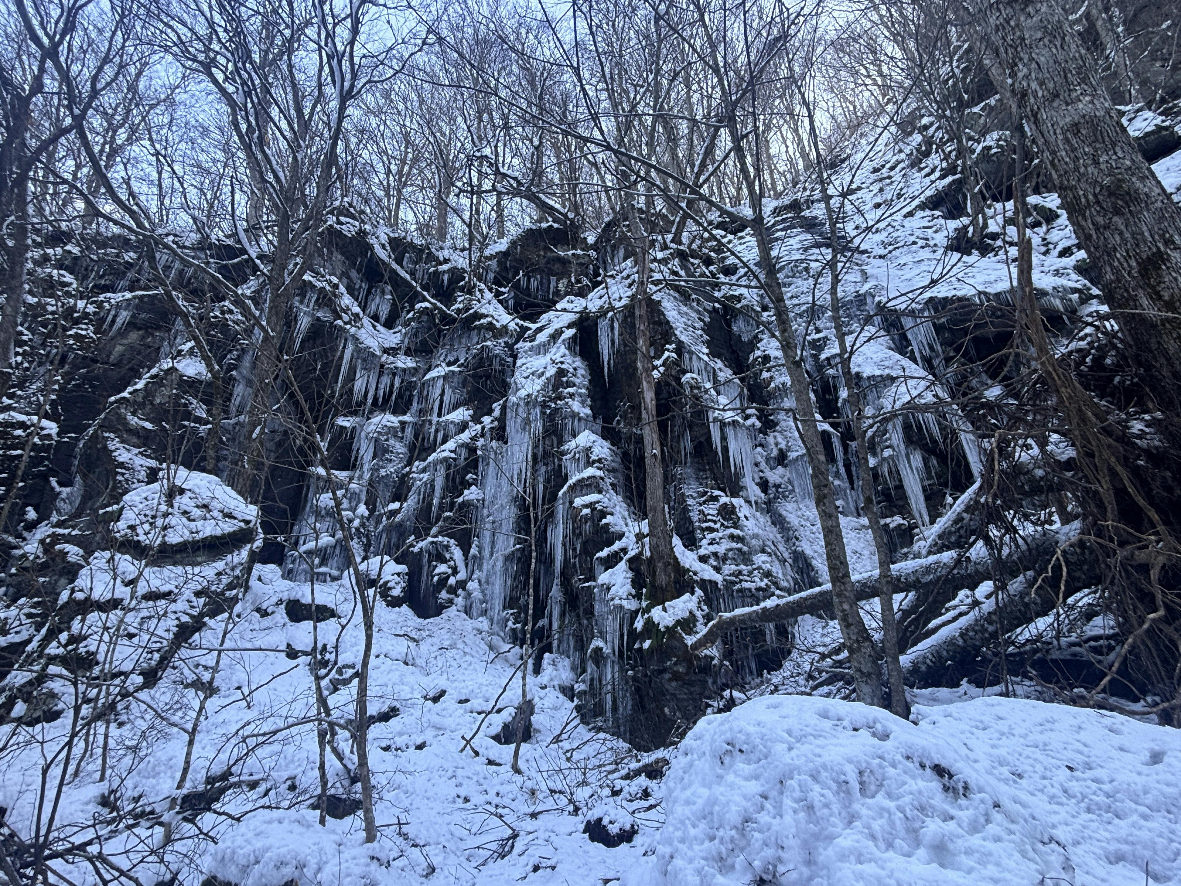 (今朝12月16日の馬門岩:氷柱が出来てきました)