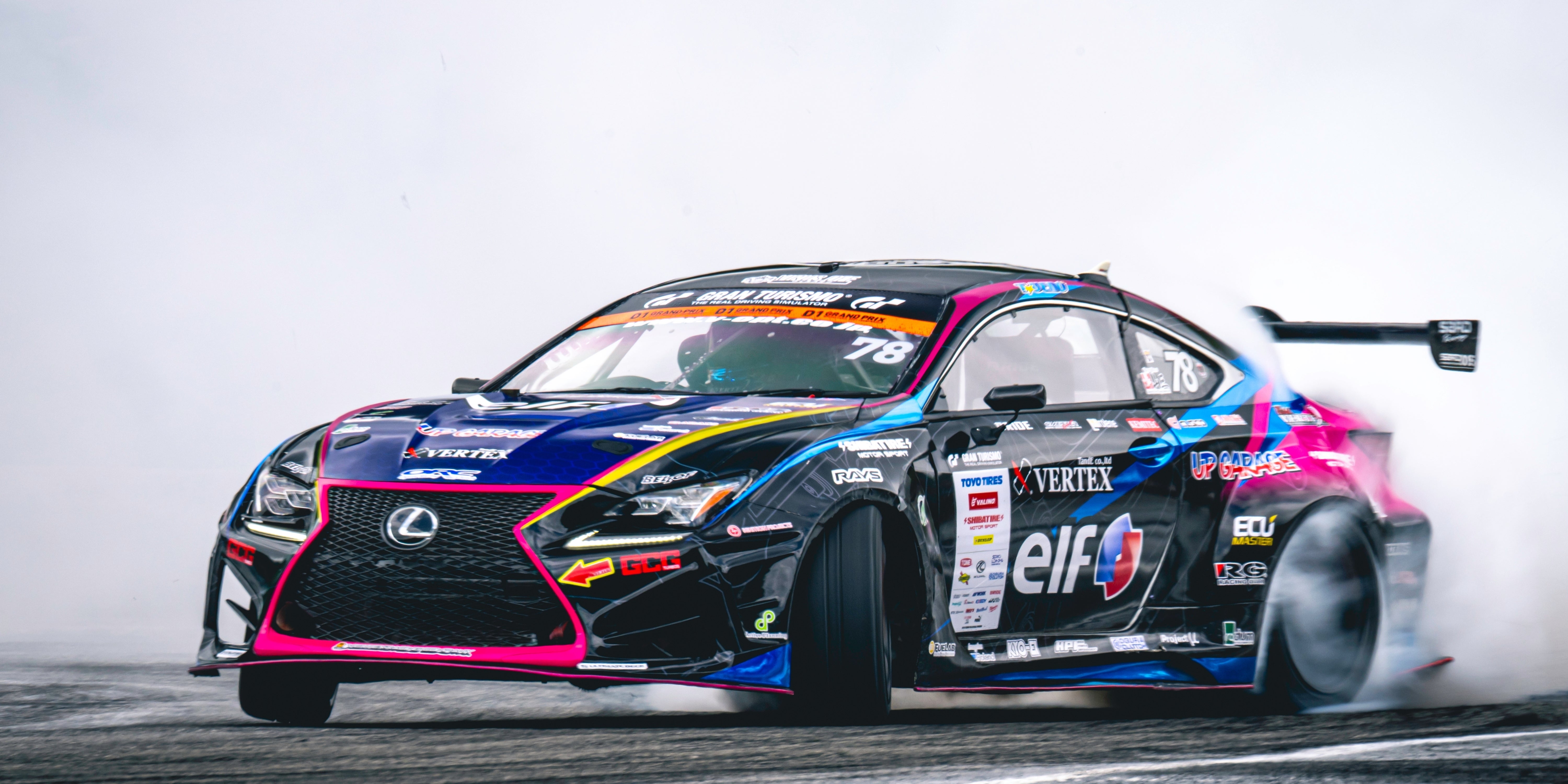 2019年からはレクサスRCへ。レクサスでのドリフト競技参戦も他に誰もいない時期からチャレンジしてきました。2025年現在もTEAM VERTEXから現役最長選手として出場し続けています。