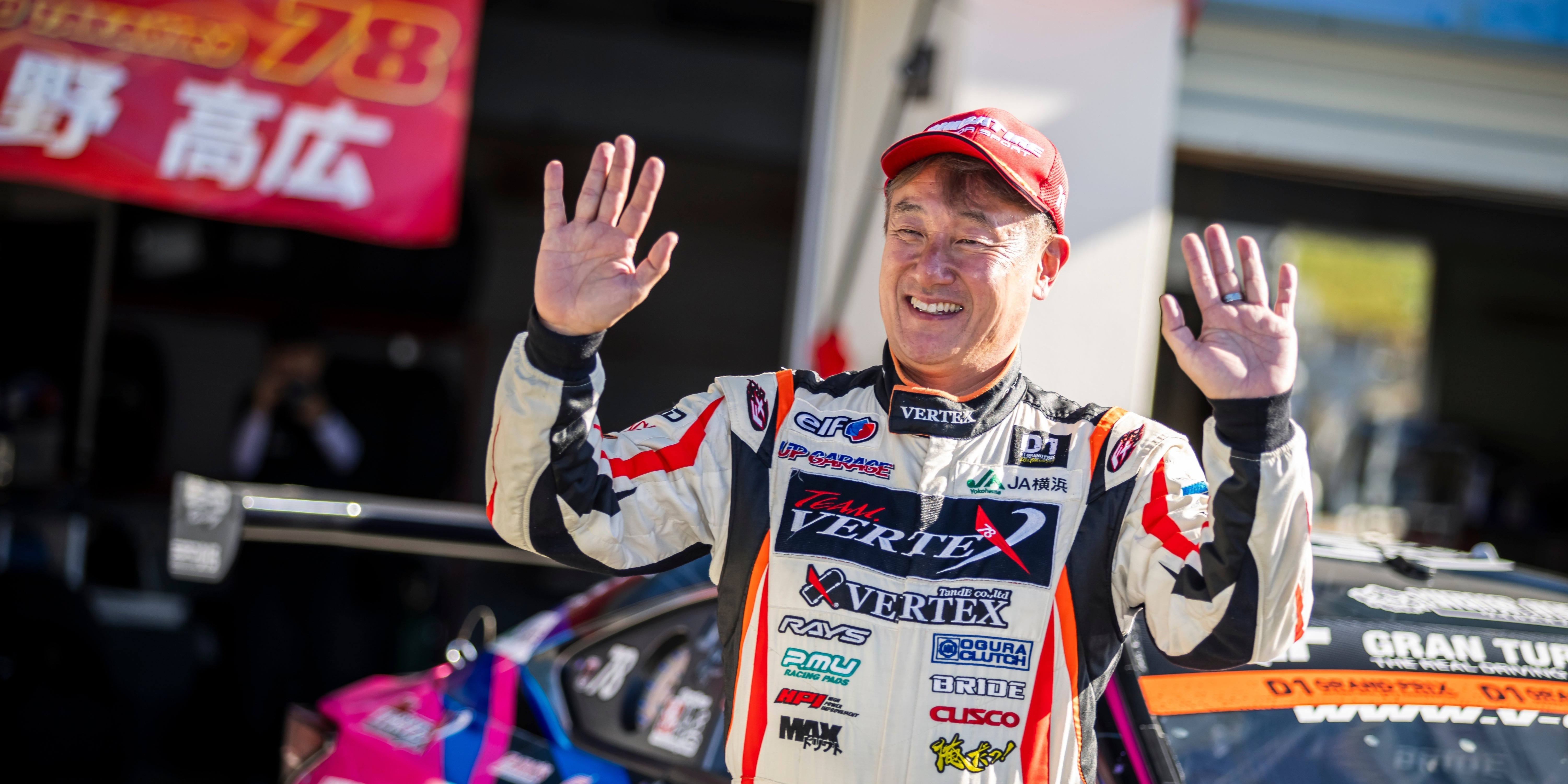 上野高広選手は、D1グランプリ第1戦から参戦を続けている最古参であり、現役最年長ドライバーです。長い年月をかけて連続参戦記録を積み重ね、いま、前人未踏のD1GP連続参戦200戦という歴史的な節目に挑もうとしています。