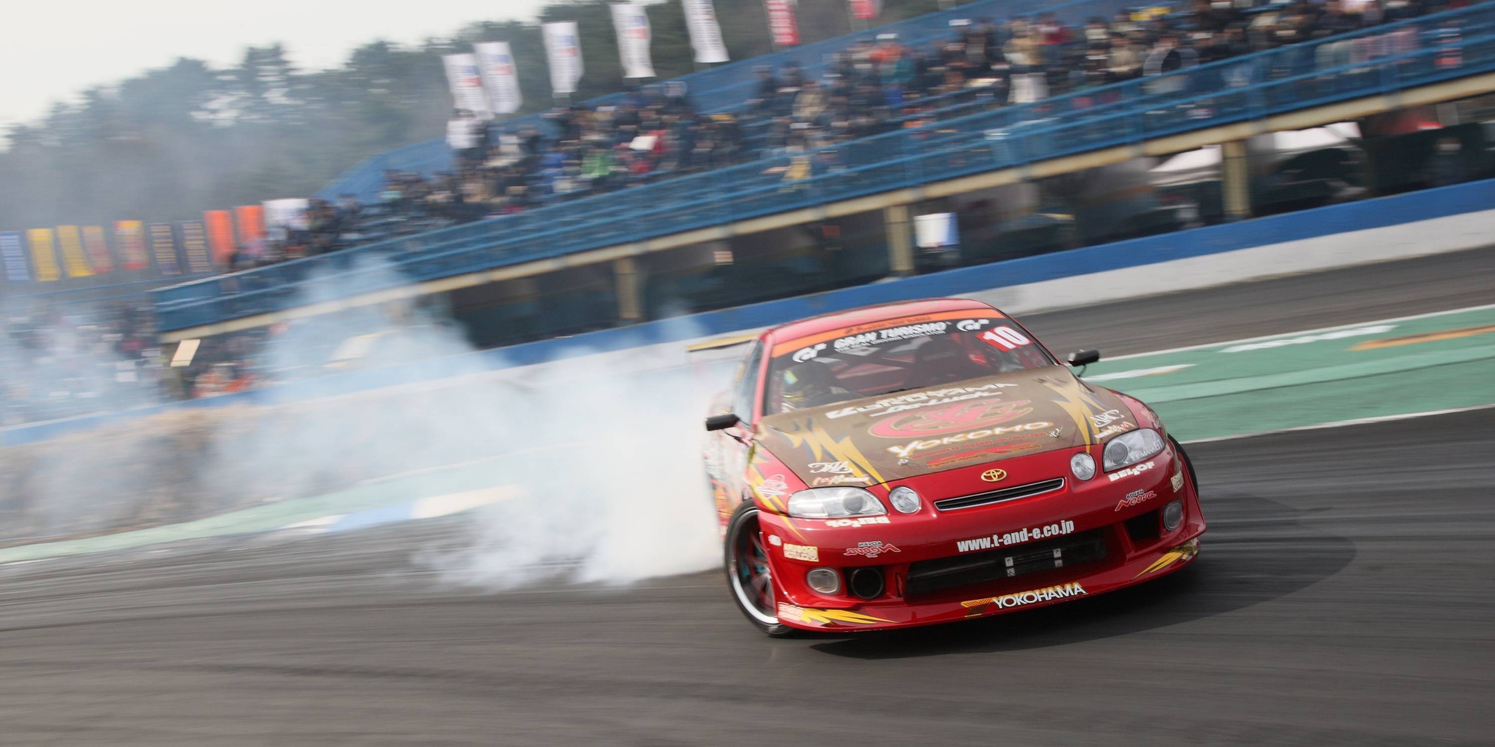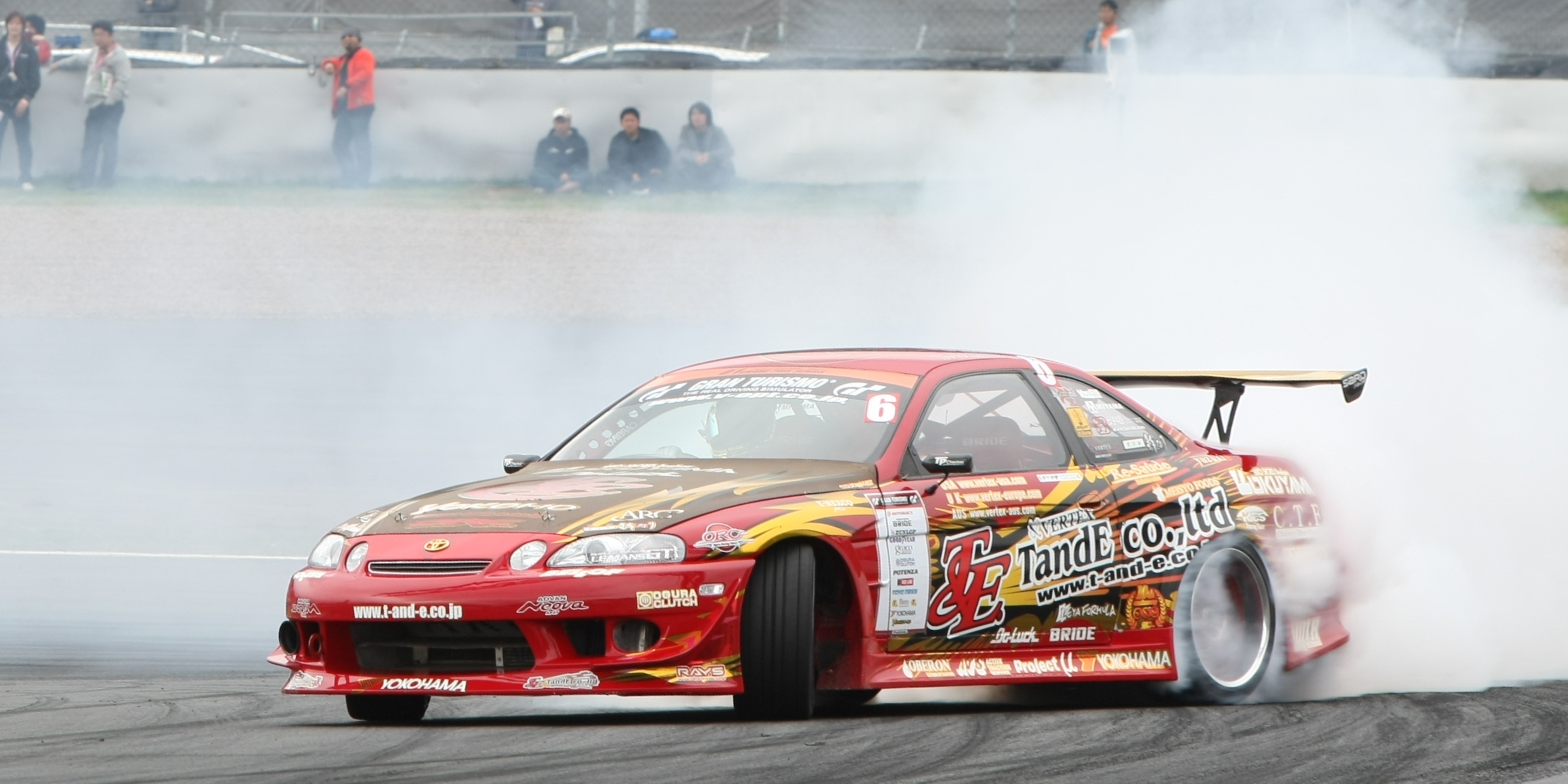 重量級の2ドアクーペをドリフト仕様にチューニングし、大型タービンとストローカーキットで約1,000馬力まで高められたソアラを自在に操る姿は、まさに熟練のテクニシャン。圧倒的な技術力によって「上野選手×ソアラ」はD1グランプリ第4戦で優勝を果たしています。