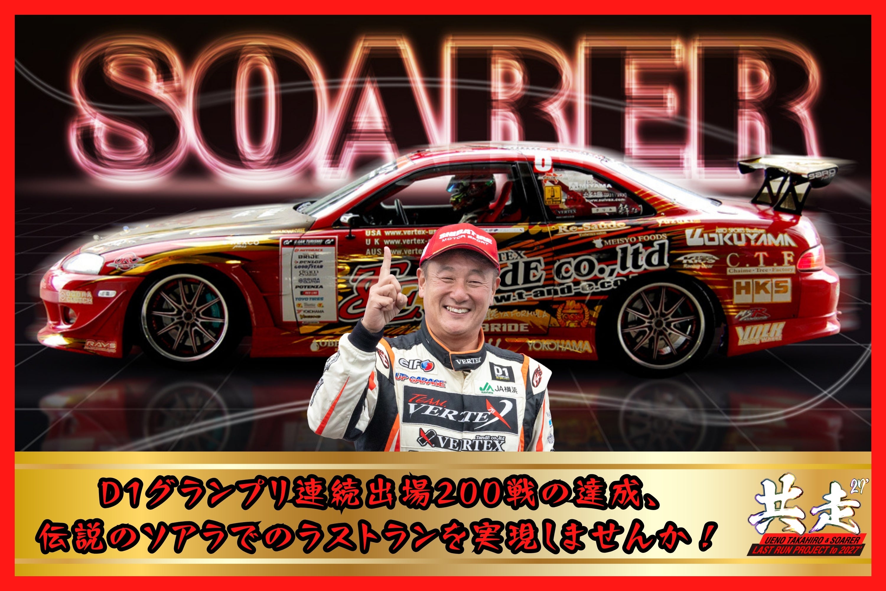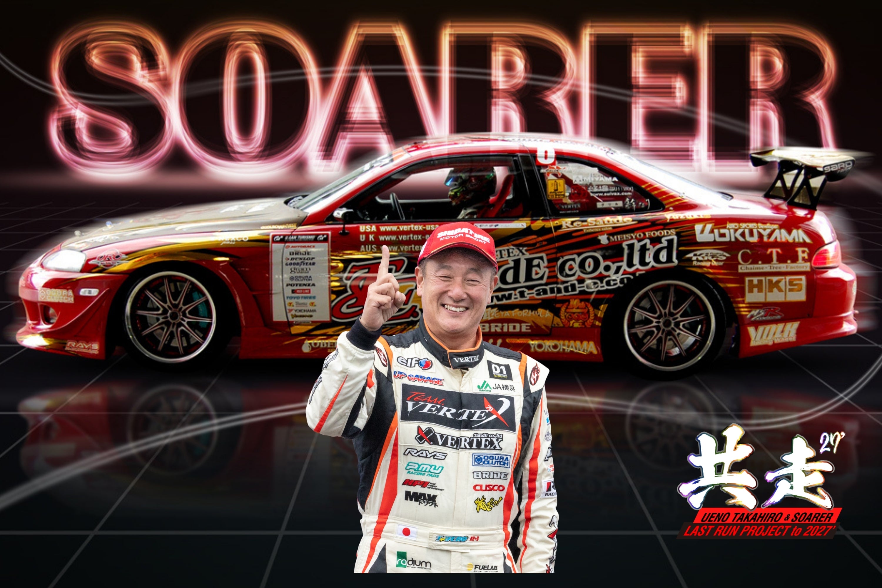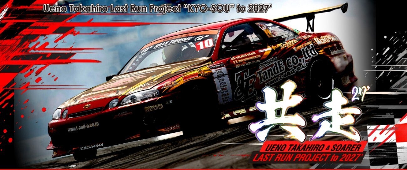 共走2027プロジェクトは、D1グランプリ第1戦から走り続ける鉄人「上野高広選手」を「愛するソアラ」とともに、最高のラストランへみんなで!送り出す参加型プロジェクトです!