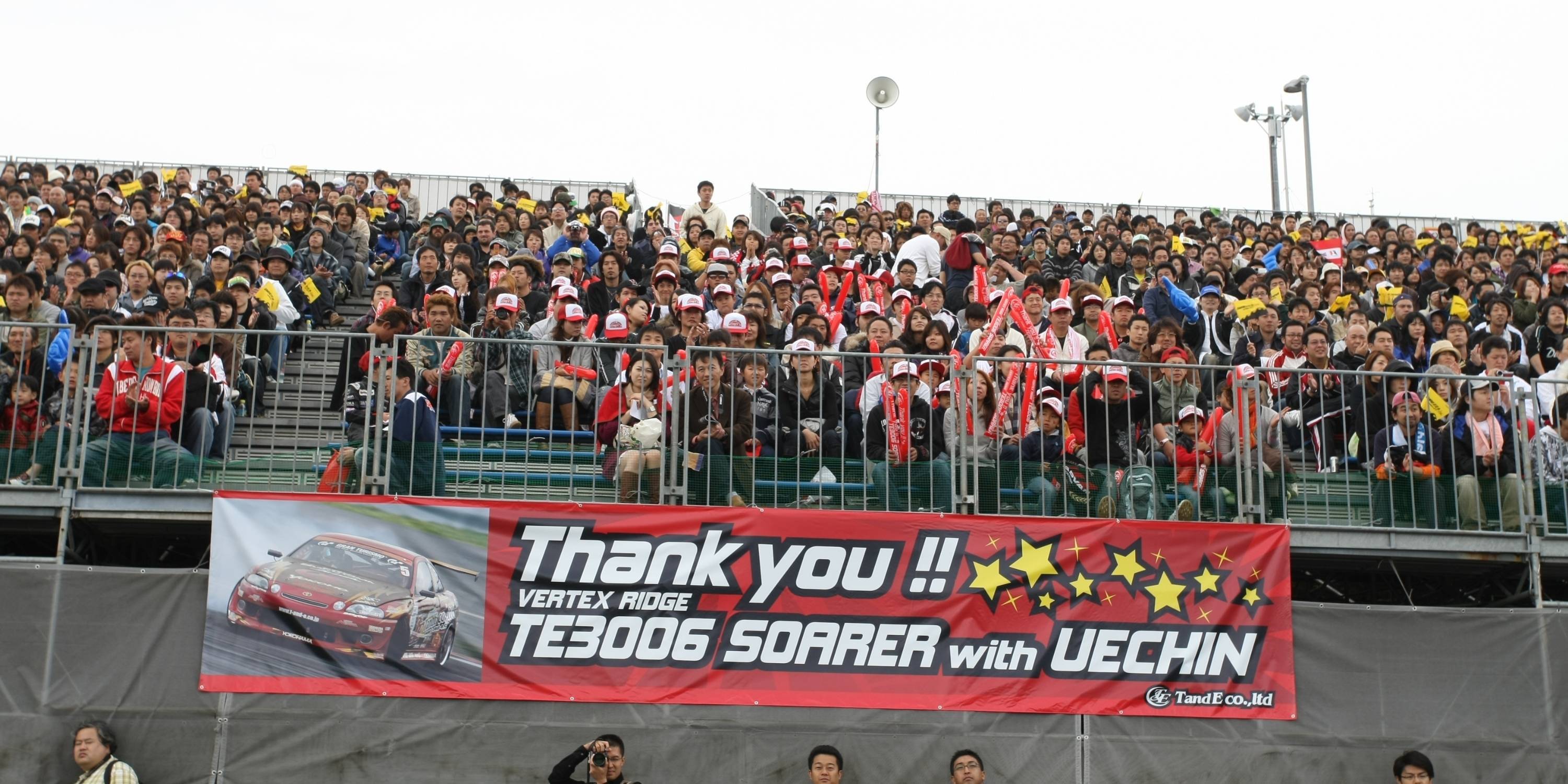 TEAM VERTEXと上野選手は、2001年のD1グランプリ創成期から、たくさんのスポンサーのみなさま、ファンのみなさま、ソアラを愛する人たち、ドリフトを愛する人たちに支えられてきました。