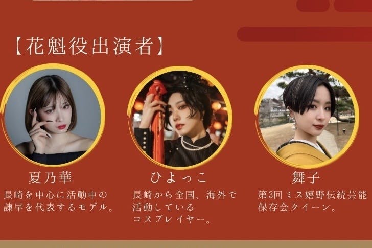 令和7年11月23日、諫早公園を舞台に「和文化創作まつり―花魁道中―」を開催します。本格的な着付け・演出による花魁道中を中心に、和の雰囲気を演出できる内容を実施する予定です。華やかな演目を通じて、諫早の魅力を再発見し、未来へ文化をつなぐイベントにします。