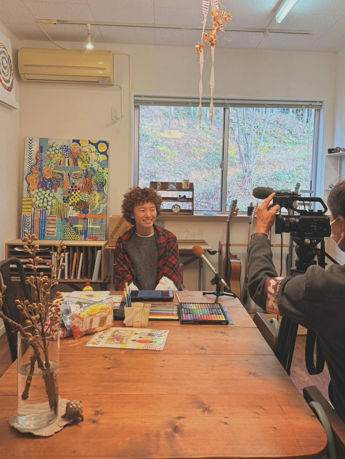 2025/12/25 19:41テレビ局が連日取材に来てくれています!たぶん、テレビで流れるといっても5~6分のことなので、使われるカットはほんの少しなのだと思いますが皆さんの想いを語って頂いております。今回は、テーマソングと挿絵をご担当頂いたふりこりこさん!絵も歌も、本作の世界観をとてもよく把握した上で制作して頂いております。女子高生なのに、ここまで深く考えて感じて頂けたのは、嬉しいのもそうですが、驚きでもありました!佐賀県もなかなかタレント抱負ですよ!YouTubeチャンネルも始めたそうなので、今後の活躍にもご注目!ふりこりこチャンネル もっと見るテレビ局が取材に来てくれました ~絵描き AYUMUさん親子~