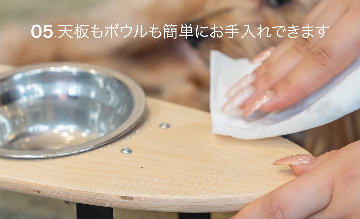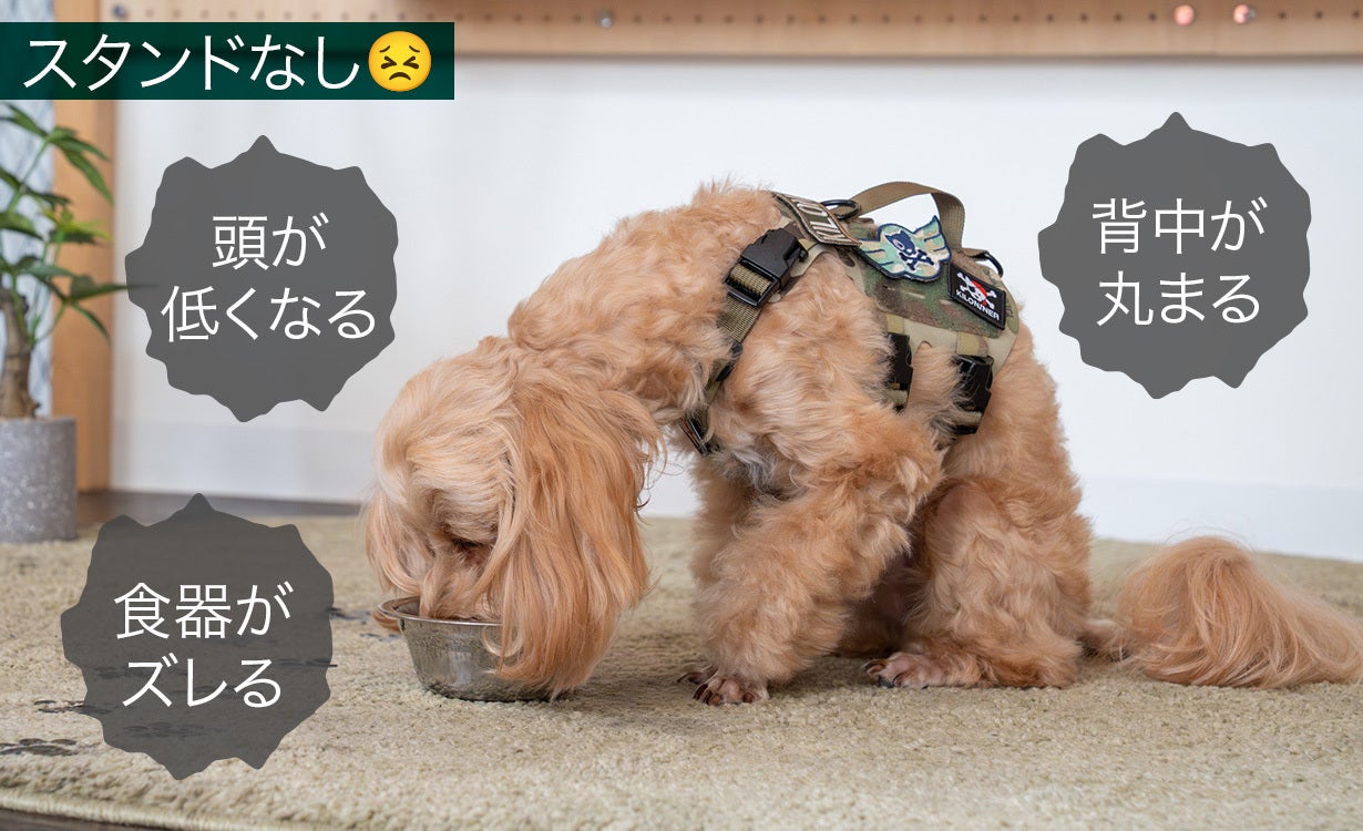 ペットの体高にあわせて高さを調整できる設計です。食道への負担を軽減し、健康的な食事姿勢をサポートします。