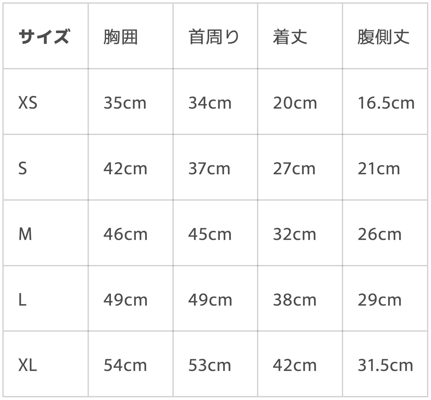 ▼サイズ表
