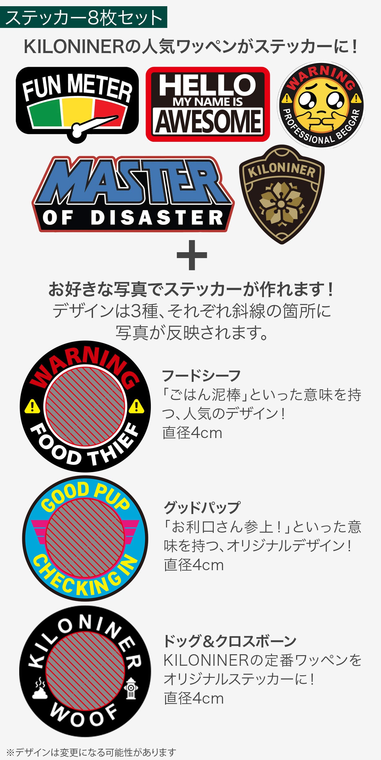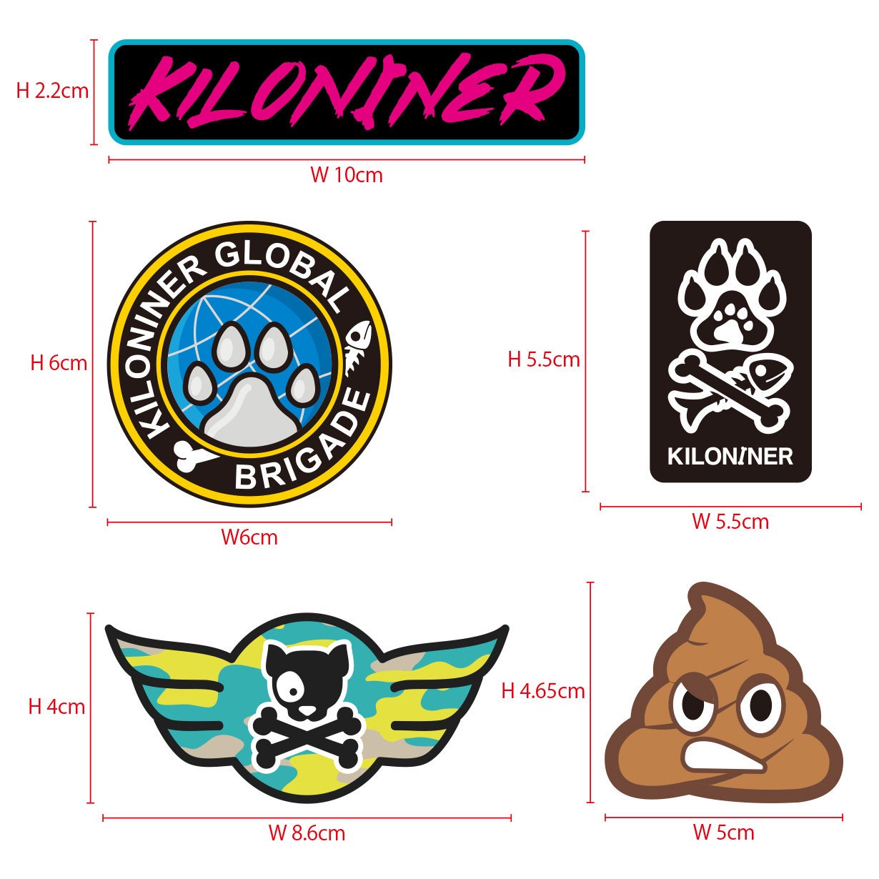 KILONINERで人気のワッペンが5枚、ステッカーとして登場。