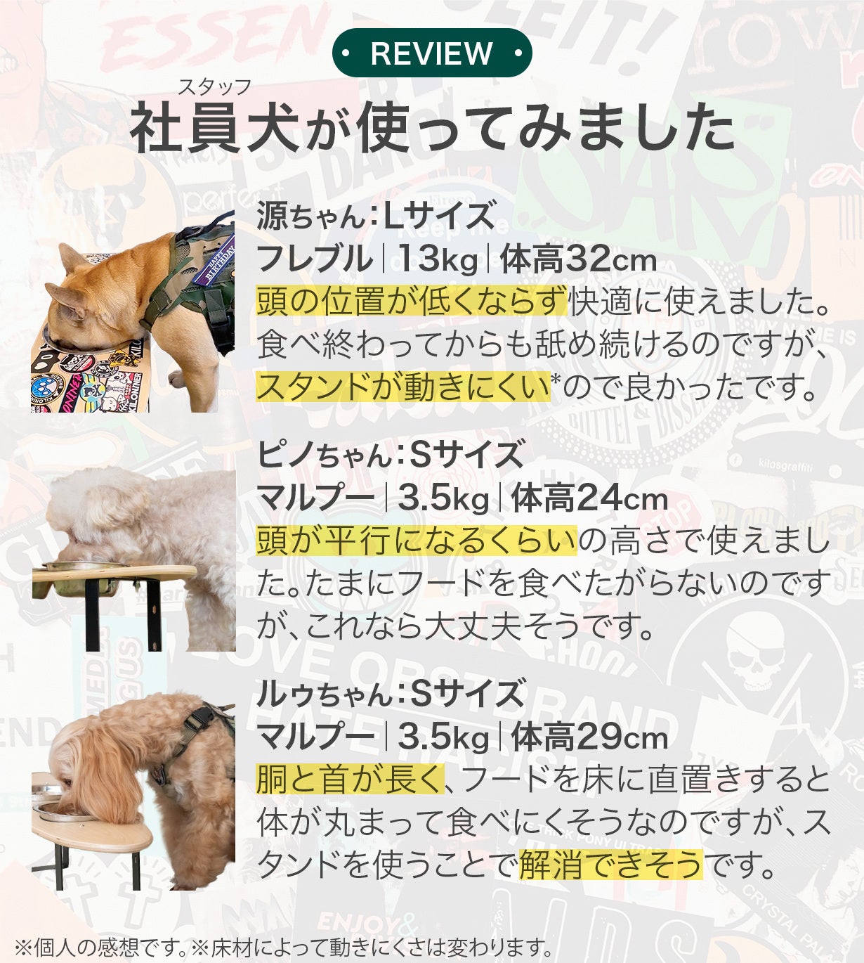 お店の看板犬・源ちゃんがごはんを食べるとき、頭を低くして食べにくそうにしている姿を見て、「もっと快適な食事スタイルを提供できないか」「気に入ったデザインにできないか」と模索してきました。