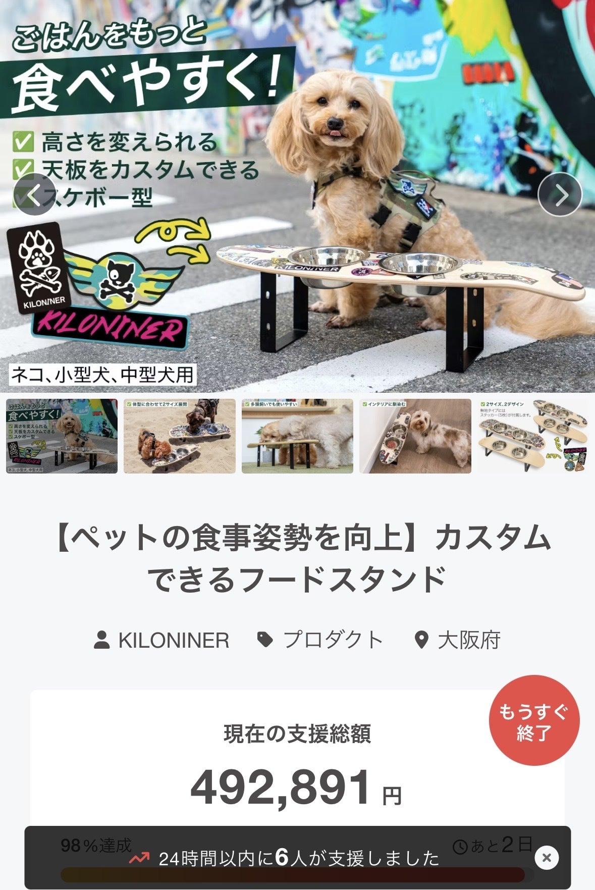 2025/12/12 13:50本プロジェクトをご覧いただき、ありがとうございます。今回ご紹介しているカスタムできるフードスタンドは、最近ペット業界の中でも「ギフトとして選ばれるアイテム」として注目を集めています。ペットの健康を考えた実用性があり、なおかつデザイン性・カスタマイズ性が高いため、「自分用だけでなく、大切な人とペットへの贈り物として選ばれやすい」そんな製品ジャンルになりつつあります。実際に、アメリカではKickstarterを中心に、同様のフードスタンドやペット用プロダクトが次々と登場しており、ペットの食事姿勢・生活環境を改善する製品は、世界的に注目されている分野です。日本ではまだ選択肢が少ないこの分野で、「本当に使いやすく、長く使えるプロダクト」を形にしたい。その想いで、私たちはこのプロジェクトに挑戦しています。製品化までは、あと一歩。この挑戦を実現するためには、引き続きみなさんの応援が欠かせません。ご支援やシェアという形で、このプロジェクトを後押ししていただけると嬉しいです。最後まで全力で取り組んでまいりますので、どうぞよろしくお願いいたします。 もっと見る