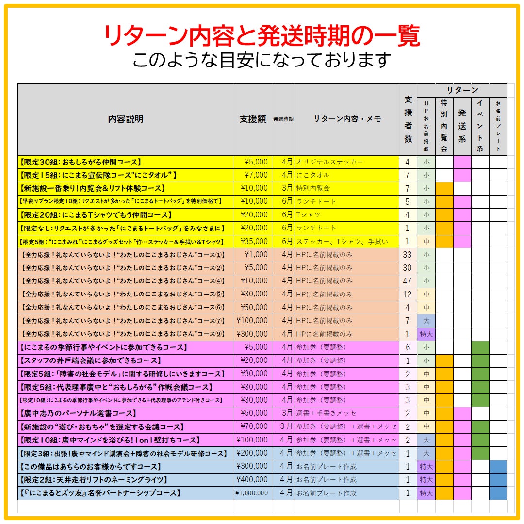 さて現在、にこまるではリターンについての準備を開始しています。