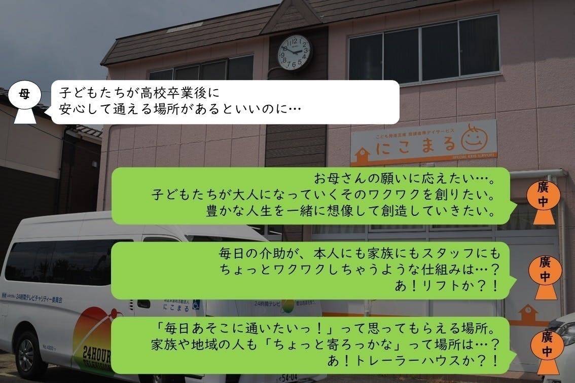 万が一にも目標金額に満たなかった場合、私たちは自己資金を投入し、規模を縮小してでも新事業所『にこライフ』を開所します。