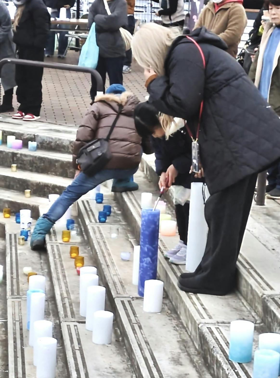 本来、返礼でもある点灯式には、青梅市の絆造園株式会社様の代表である社長様がご参加予定でしたが、お仕事の都合により当日は会場に来ることができませんでした。その想いを受け継ぎ、この大切な役目を担ってくれたのが、青梅市内の小学校1年生・栞奈(かんな)ちゃんです。栞奈ちゃんは、絆造園株式会社様の代理として、そっと、はじまりの青い灯りを灯してくれました。その一灯から、会場いっぱいに、やさしい灯りが広がっていきました。