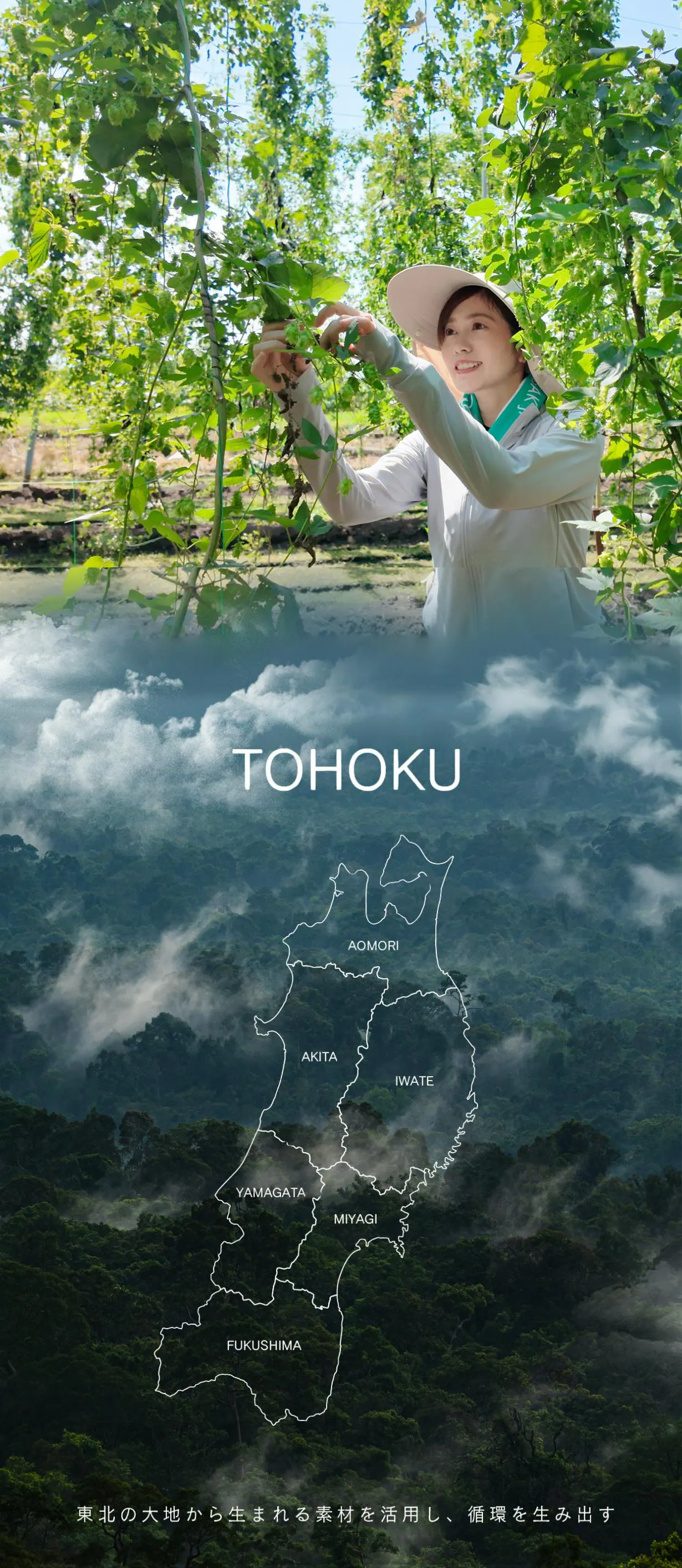 実は全国のホップの9割以上は、東北の大地から生まれています。ホップはビールの原料として広く知られていますが、実は入眠促進をはじめ様々な健康サポート成分を含有しているハーブでもあります。