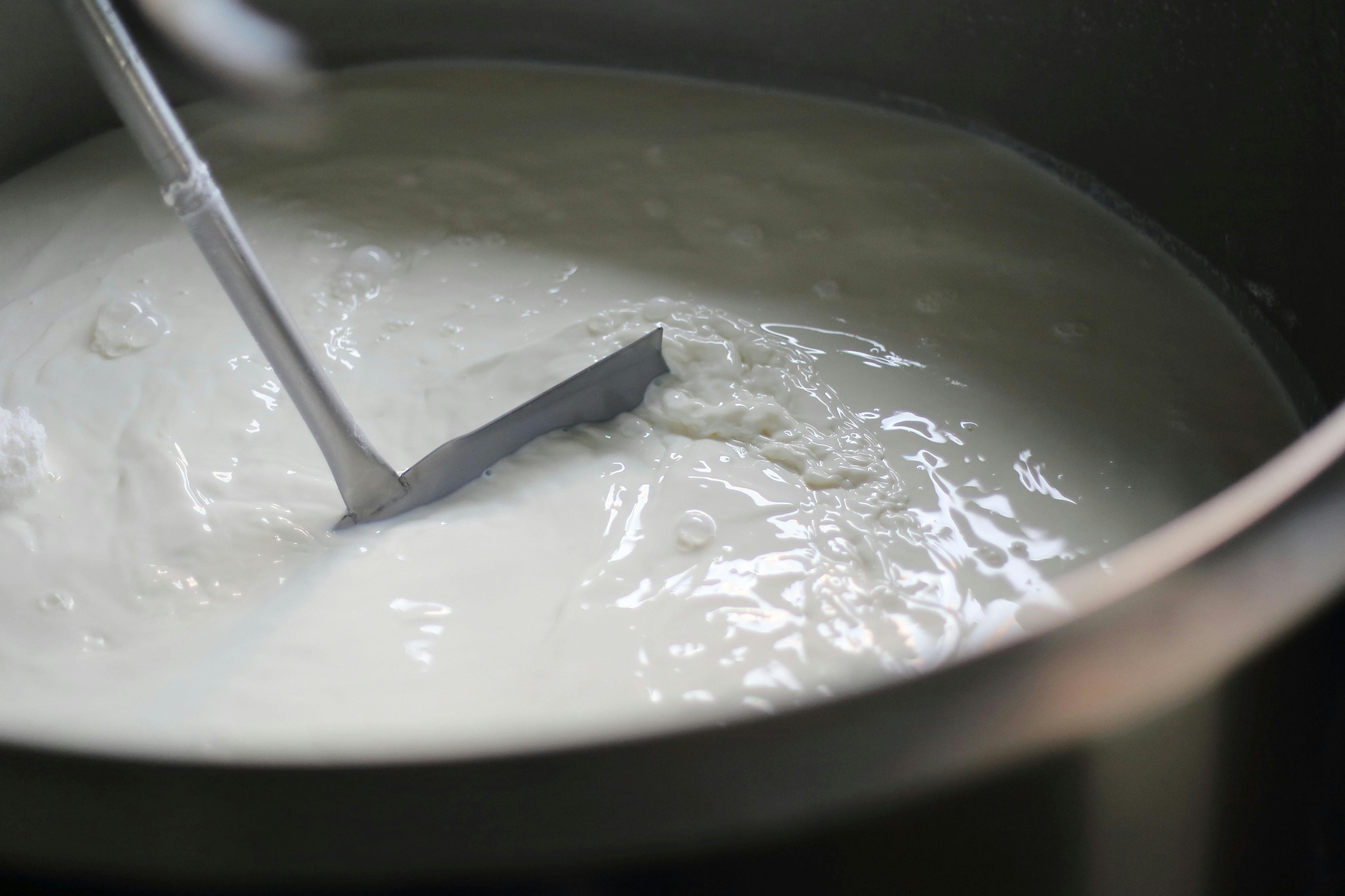 モッツァレラチーズ製造中