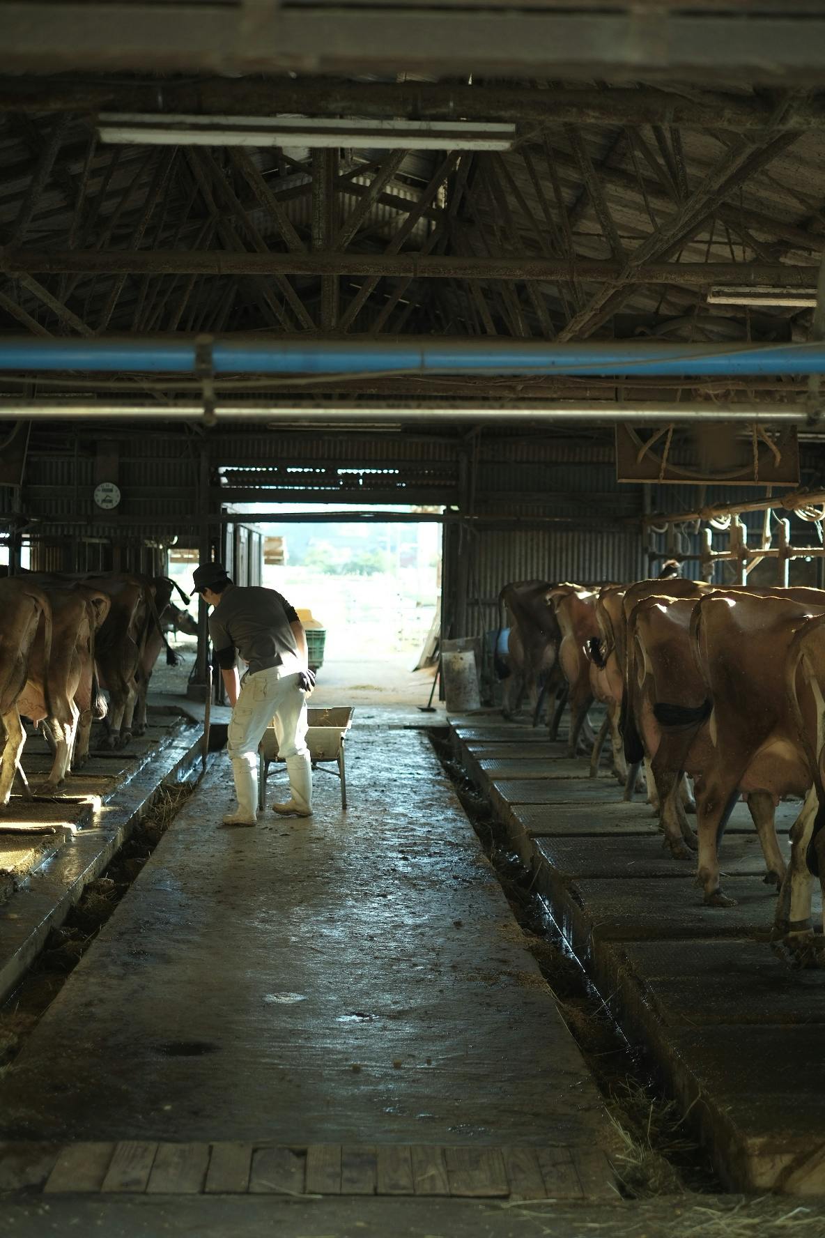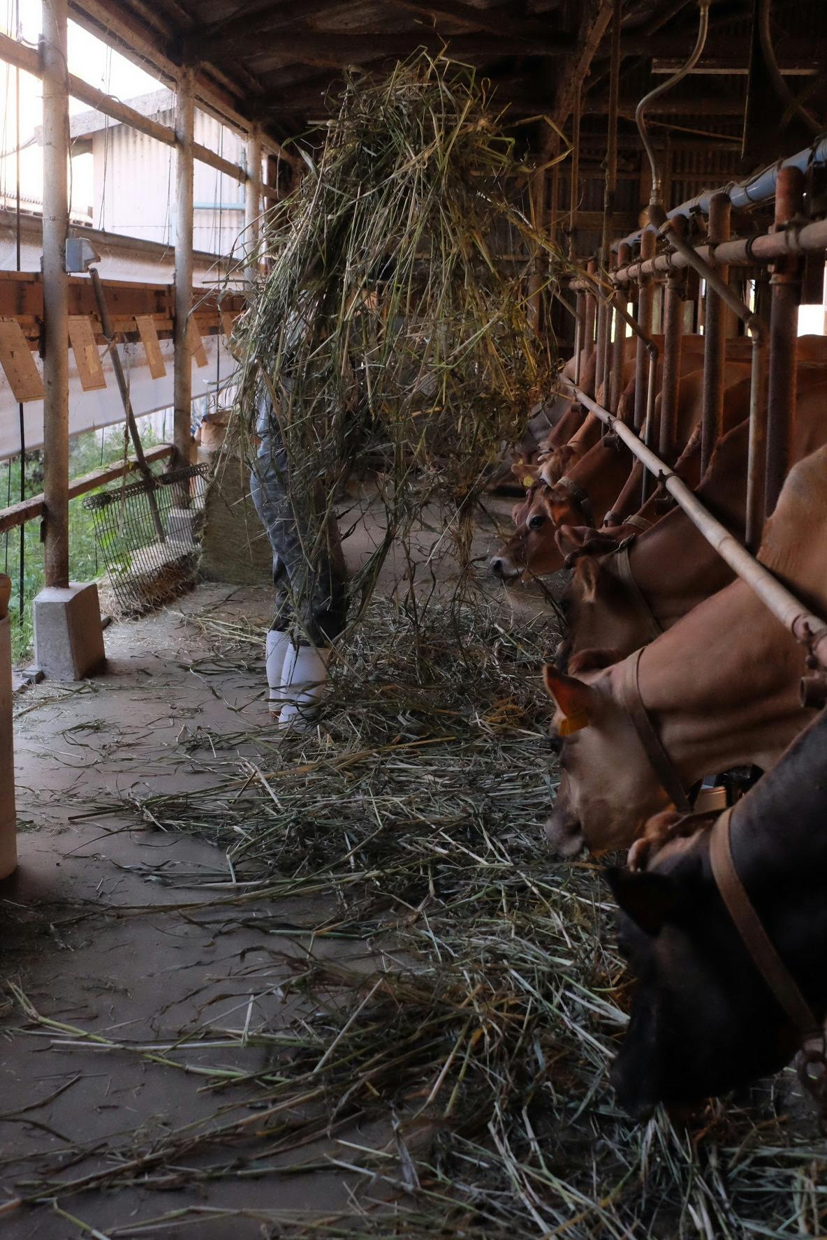今でも除糞は手作業です。朝の搾乳後のほっとする瞬間