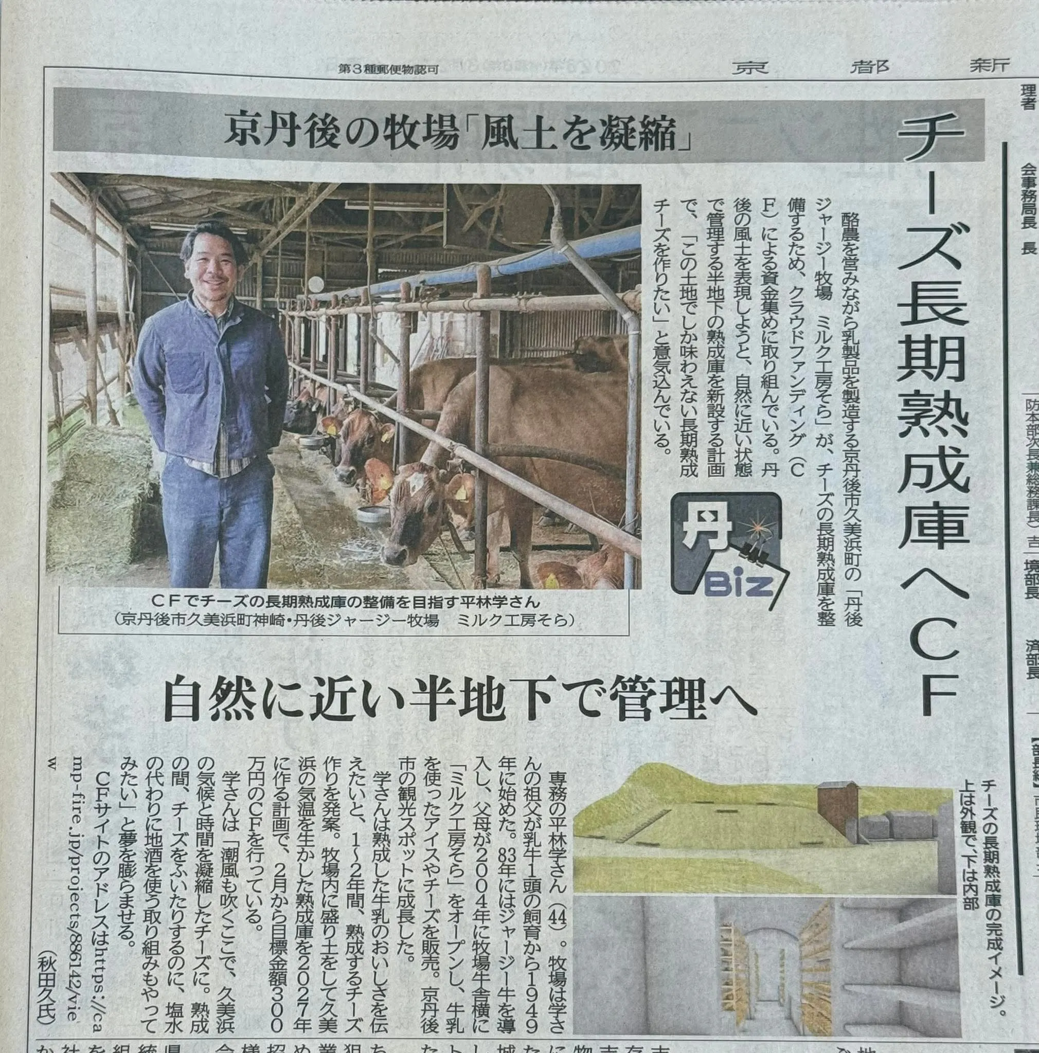 このたび、私が生まれ育った久美浜の風土を生かして、「この土地でしかできない長期熟成チーズづくり」に挑戦します。