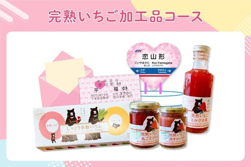また、恋山形駅のピンクと「いちご」の赤が見事にマッチして、視覚的にも楽しめます。担当者イチオシの返礼品ですので、ぜひチェックしてみてください!