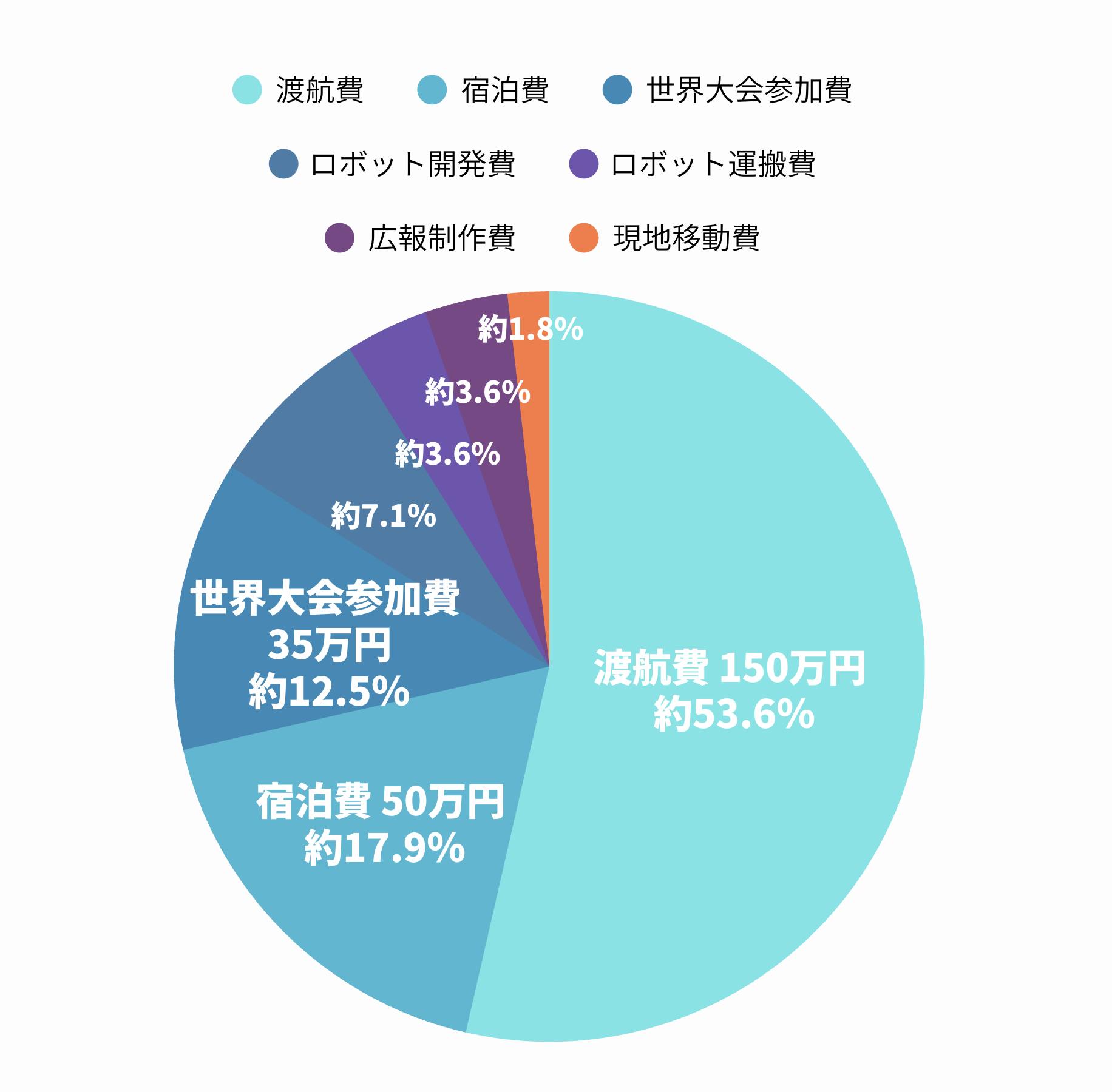 私たちは現在、世界大会出場に向けて準備を進めています。しかし、万全の状態で挑むためには多額の費用が必要です。世界大会出場に必要な総額は約280万円を見込んでいます。