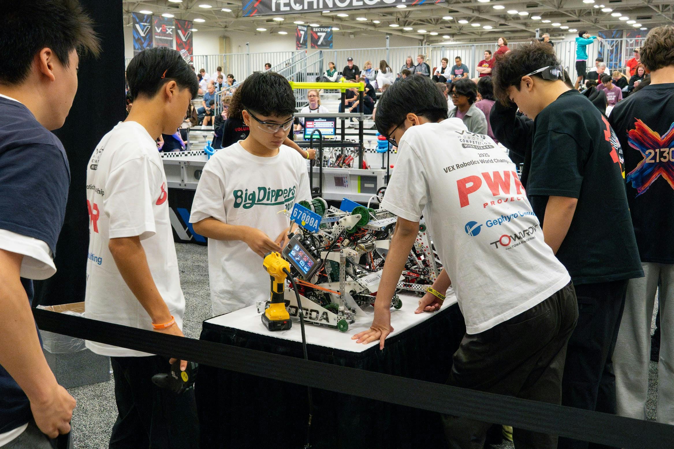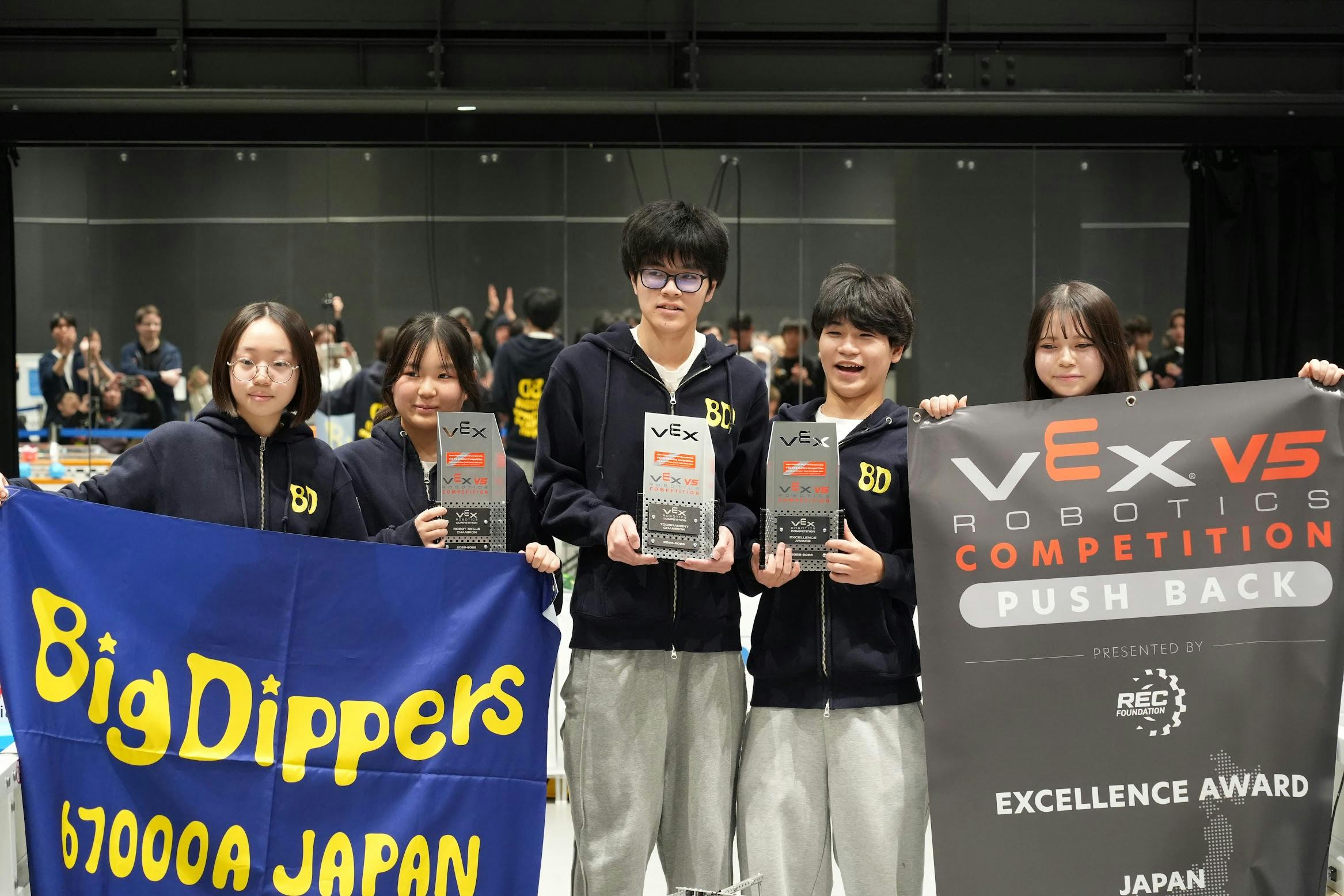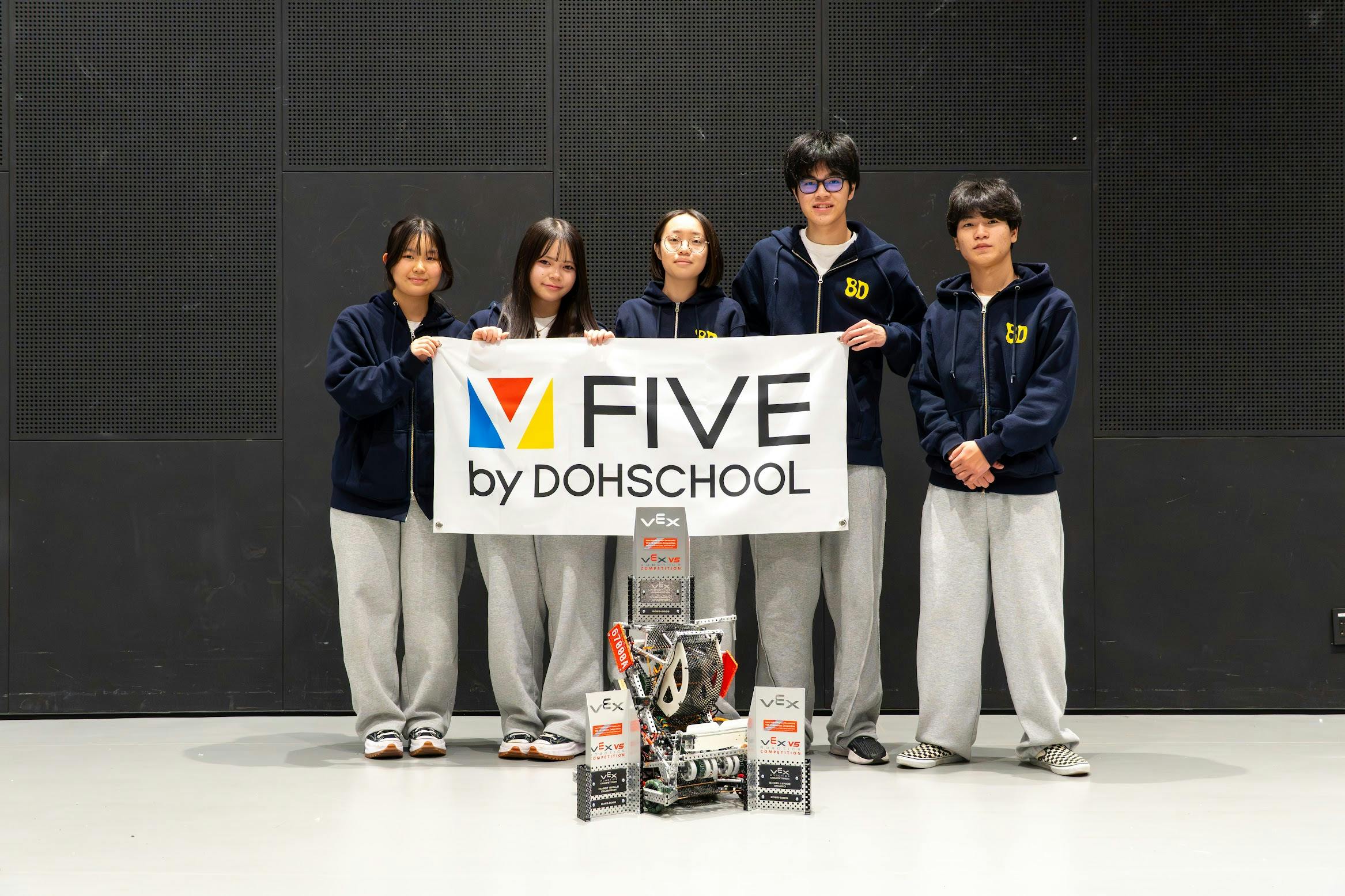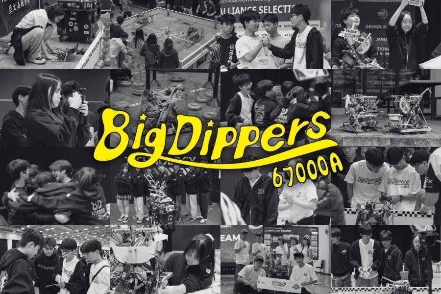 東京都世田谷区・二子玉川のプログラミング教室「FIVE by DOHSCHOOL」を拠点に活動している、中高生ロボコンチーム「Big Dippers」です。私たちは世界最大級のロボティクス競技大会であるVEX V5 Robotics Competition(V5RC)に挑戦し、ロボットの設計・製作・プログラミング・戦略立案・広報・チーム運営までを、すべて自分たちの手で行っています。