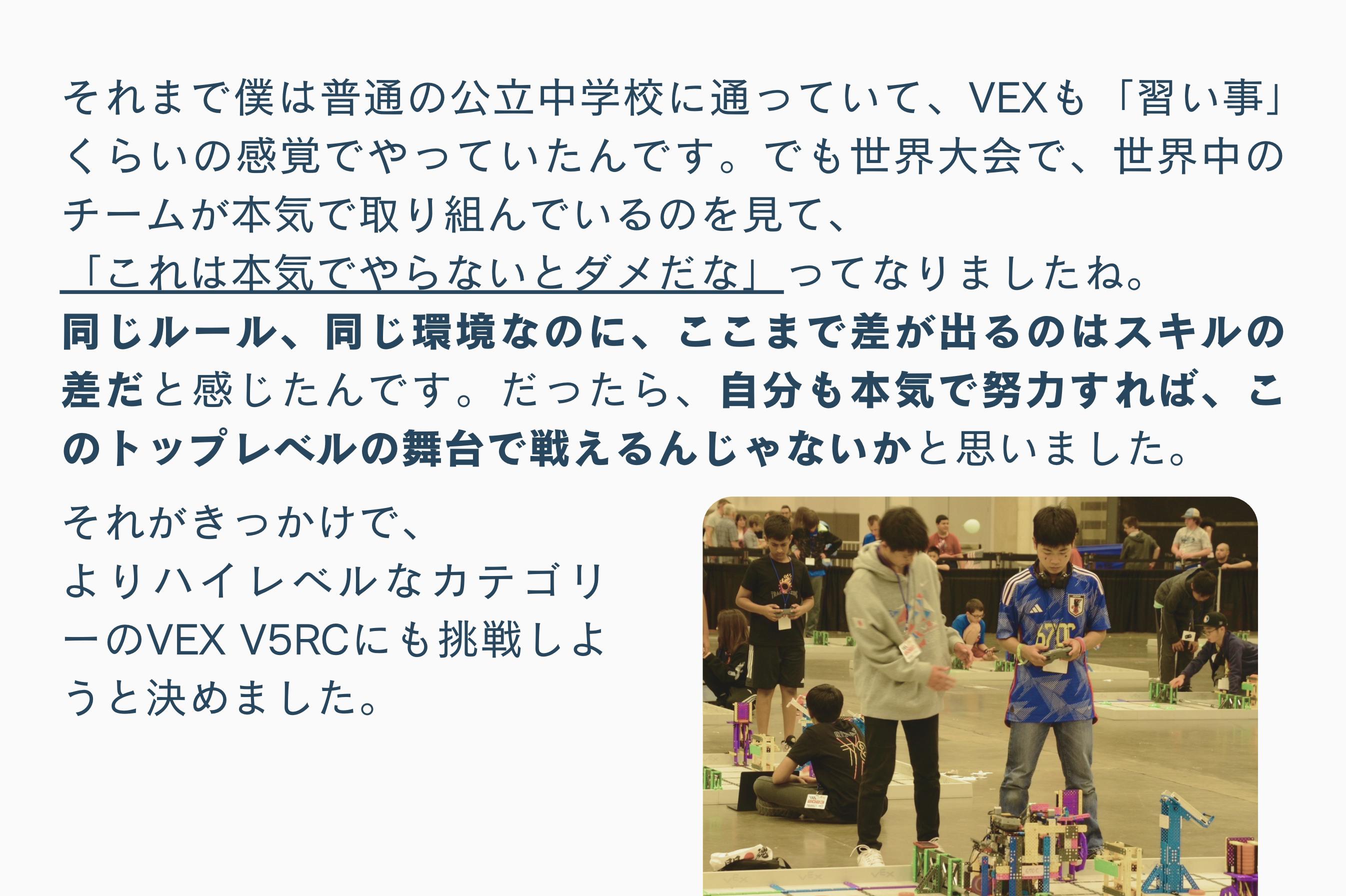 私たちはVEXを通して、これらの価値を強く実感してきました。