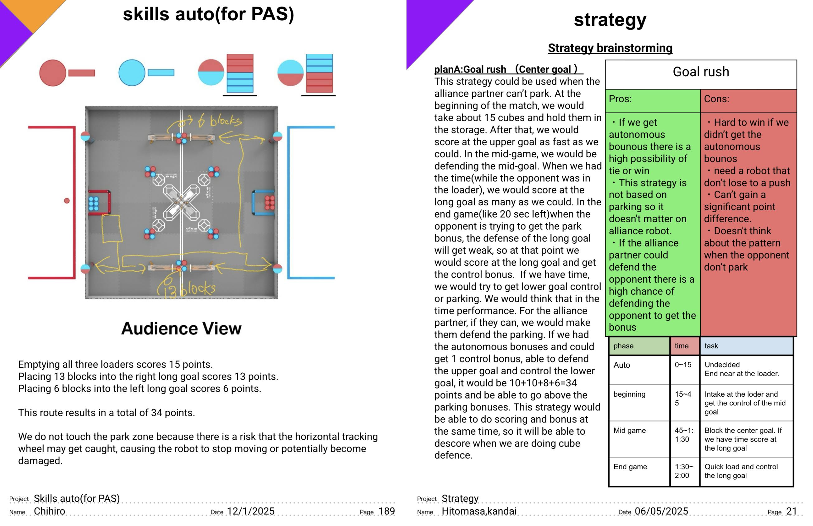 私たちが挑戦しているのは世界最大級のロボティクス競技大会である VEX V5RC です。世界各国から約20,000チーム以上が参加し、単にスキルや勝敗を競うだけでなく、エンジニアリングノートブック、インタビュー、チーム運営、資金調達や広報活動など、総合的な要素も評価される点が特徴です。
