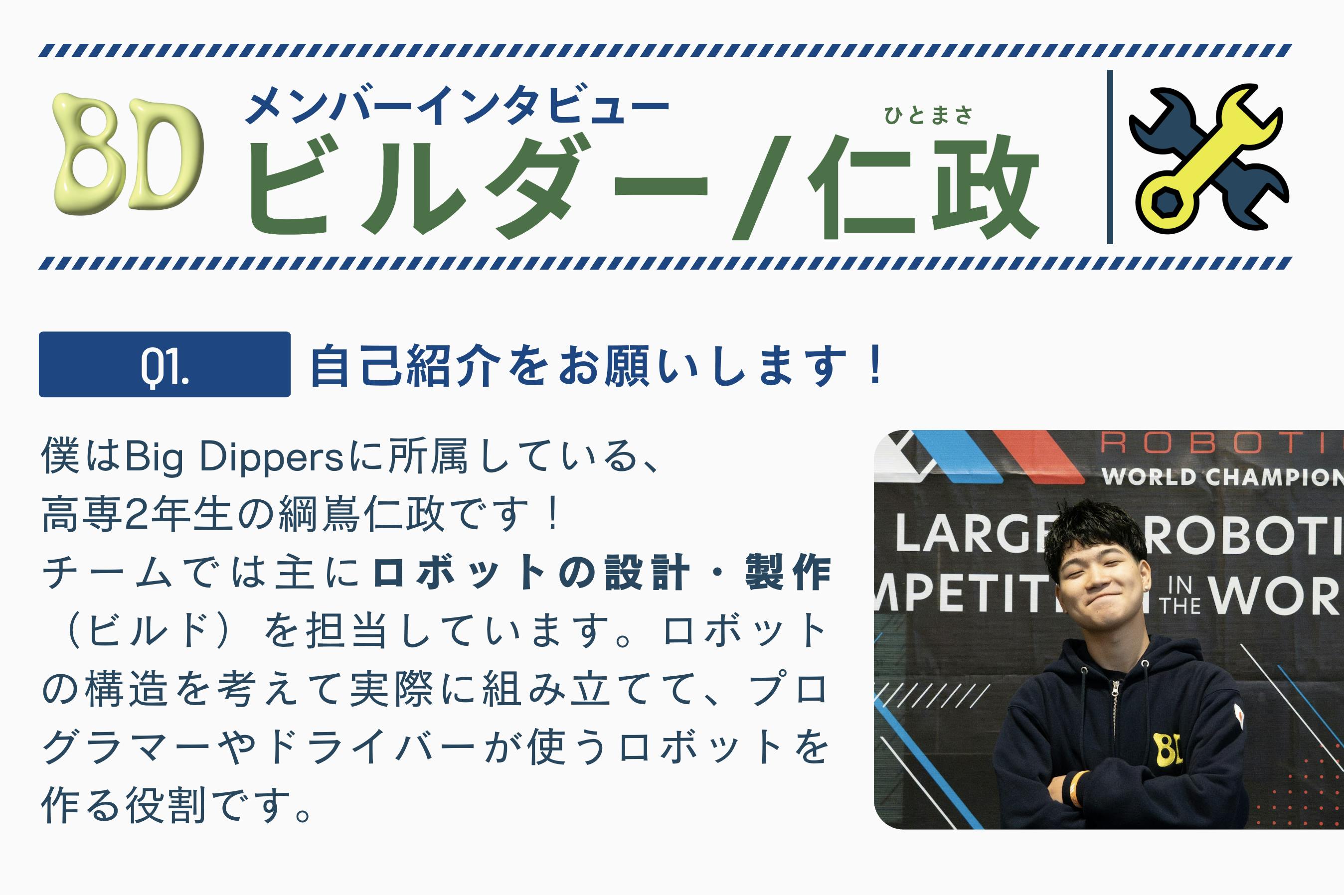Big Dippersは、中高生5人で構成されたロボコンチームで、「挑戦し続け、世界への道を切り拓く」を長期的な目標として掲げ、活動しています。