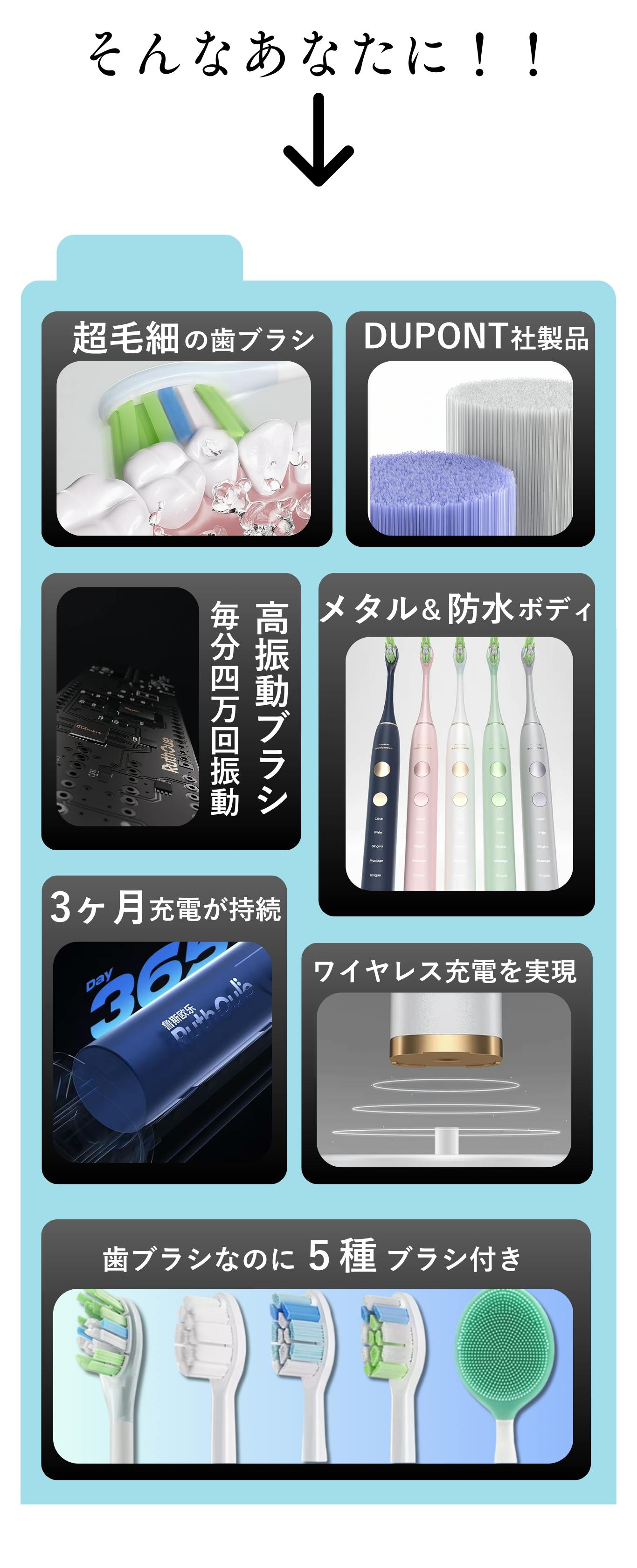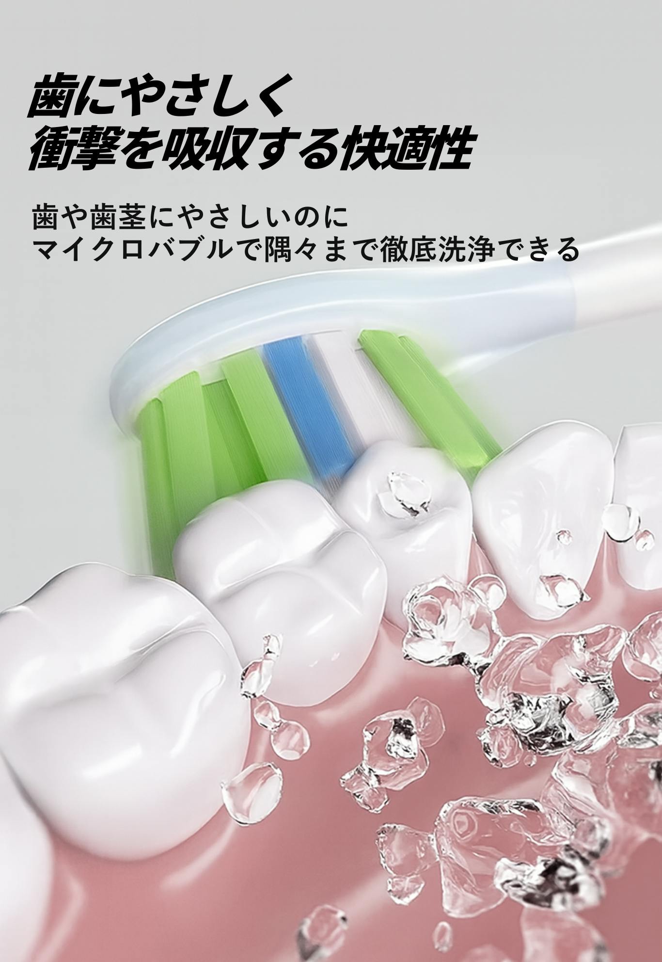 電動歯ブラシの多くは“磨く性能”だけに注力していますが、本製品はさらに一歩先を行きます。毛先や素材に抗菌仕様を取り入れることで、雑菌の繁殖を抑え、毎日のケアをより清潔に。