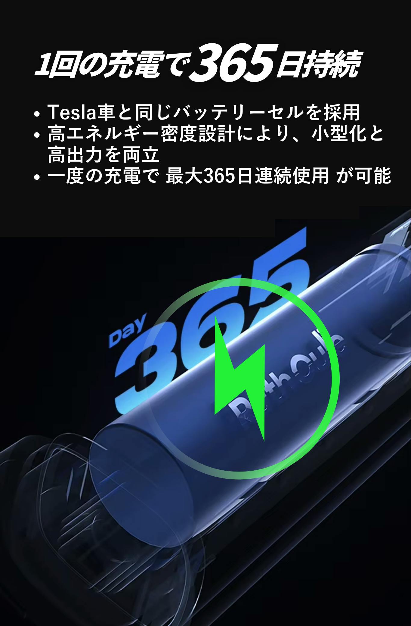 最大ランタイム:最大370日(1回の充電で使用可能)