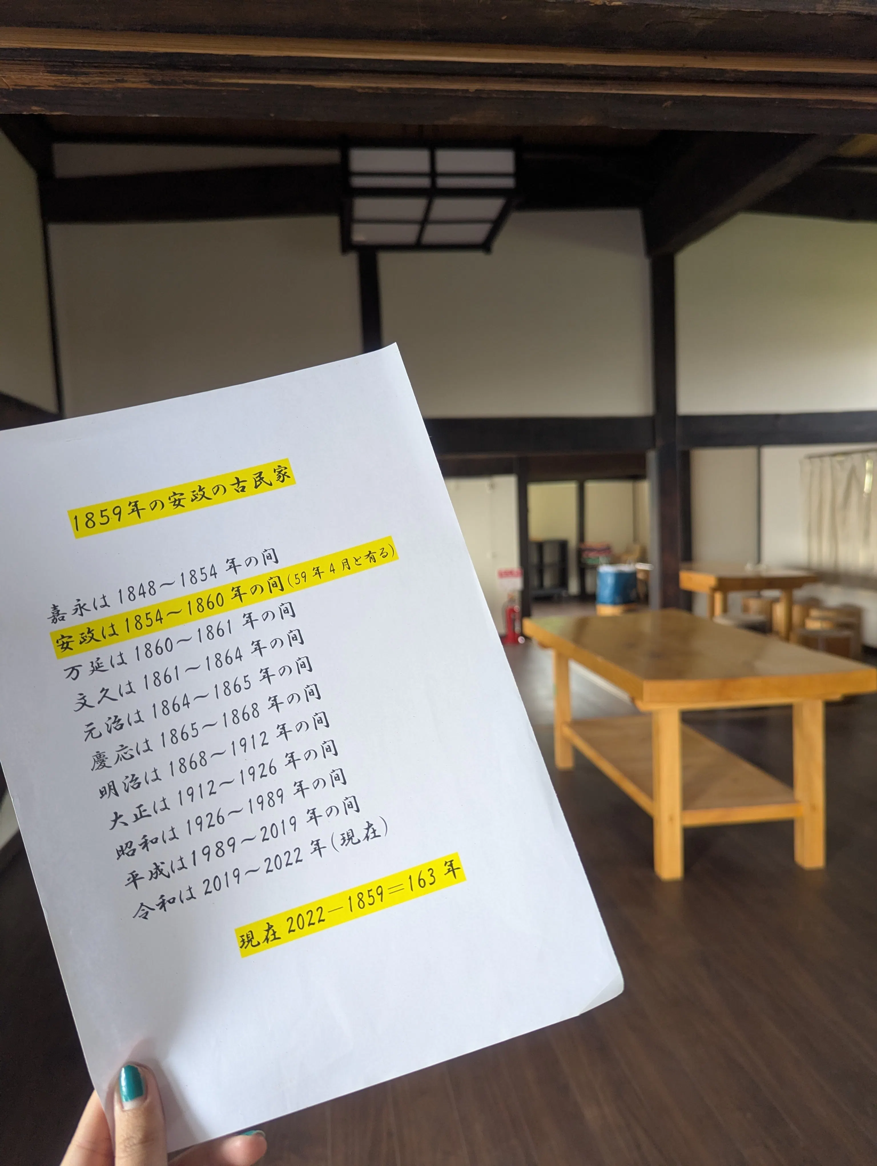 店舗内の様子。1859年頃(166年ほど前)の古材を使用して建築した古民家です。