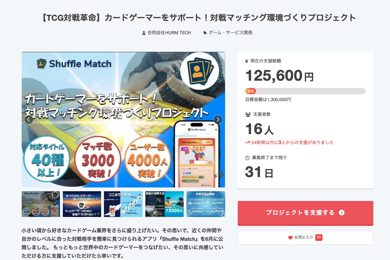 クラウドファンディングはまだ始まったばかりですが、
