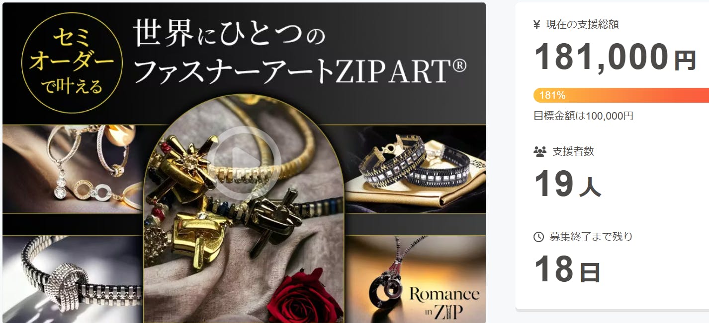 2026/01/07 12:00ご支援者の皆さまへいつも温かいご支援と応援を、本当にありがとうございます。Romance in ZIPの里桜です。本日、京セラ株式会社様との新プロジェクト〈Kyo-to-Luxe〉について、PR TIMESにて発表いたしました。ファスナーという工業素材と、京都オパールという日本発の素材が出会い、構造美と感性を大切にした新しい表現に取り組んでいます。こうした挑戦が実現できているのは、皆さま一人ひとりのご支援があってこそです。改めて、心より感謝申し上げます。よろしければ、下記より発表内容をご覧ください。https://prtimes.jp/main/html/rd/p/000000003.000148913.htmlクラウドファンディングは、作品が生まれる背景やプロセスを共有する試みとして、2026年1月18日まで実施しております。引き続き、進捗は活動報告にてお届けしてまいります。どうぞ最後まで見守っていただけましたら幸いです。Romance in ZIP里桜 もっと見る