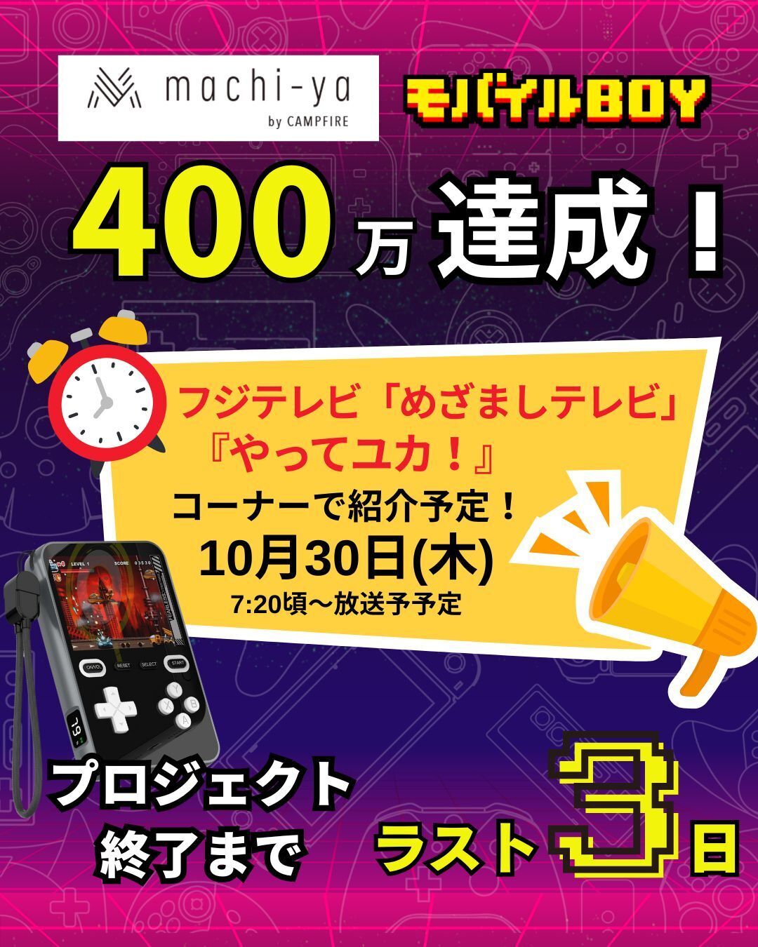 “遊べる”モバイルバッテリーとして話題沸騰中の「モバイルBOY」プロジェクトもついに残り3日となりました!!