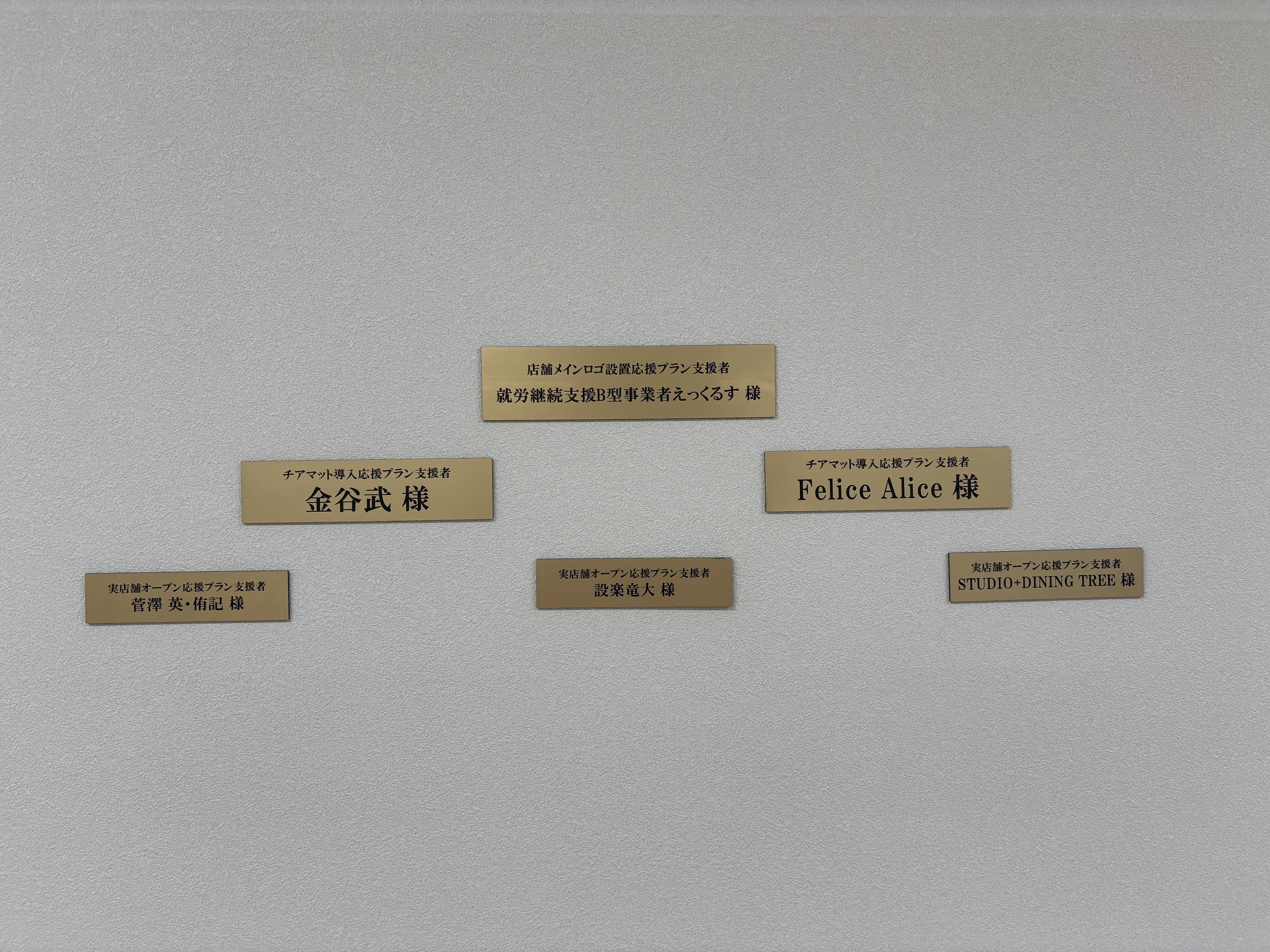 オープン後も見学・体験時にご覧いただける特別な応援プレートです。