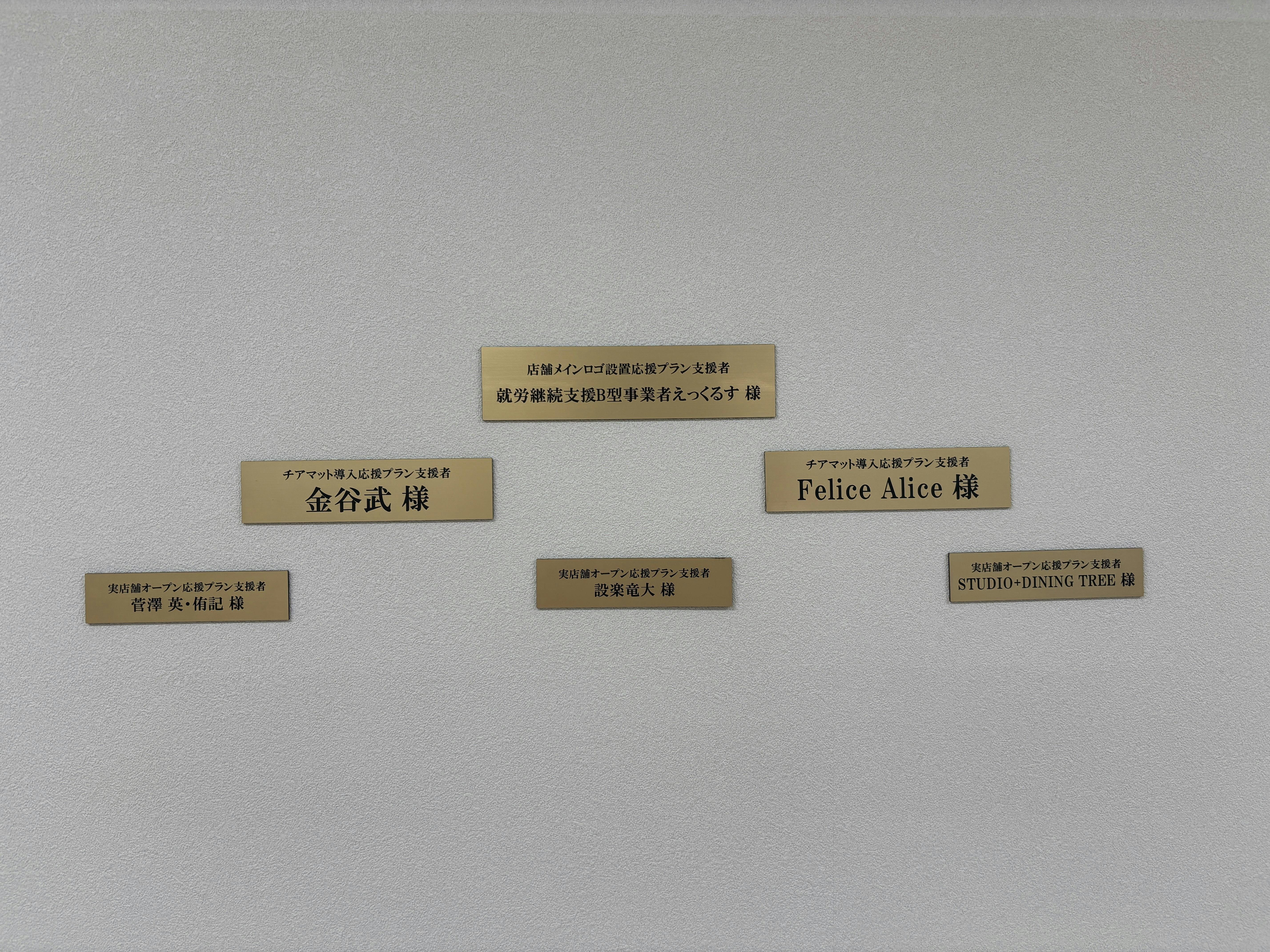 ・教室内「オープン応援プレート」にも特別枠でお名前掲載(上位欄)