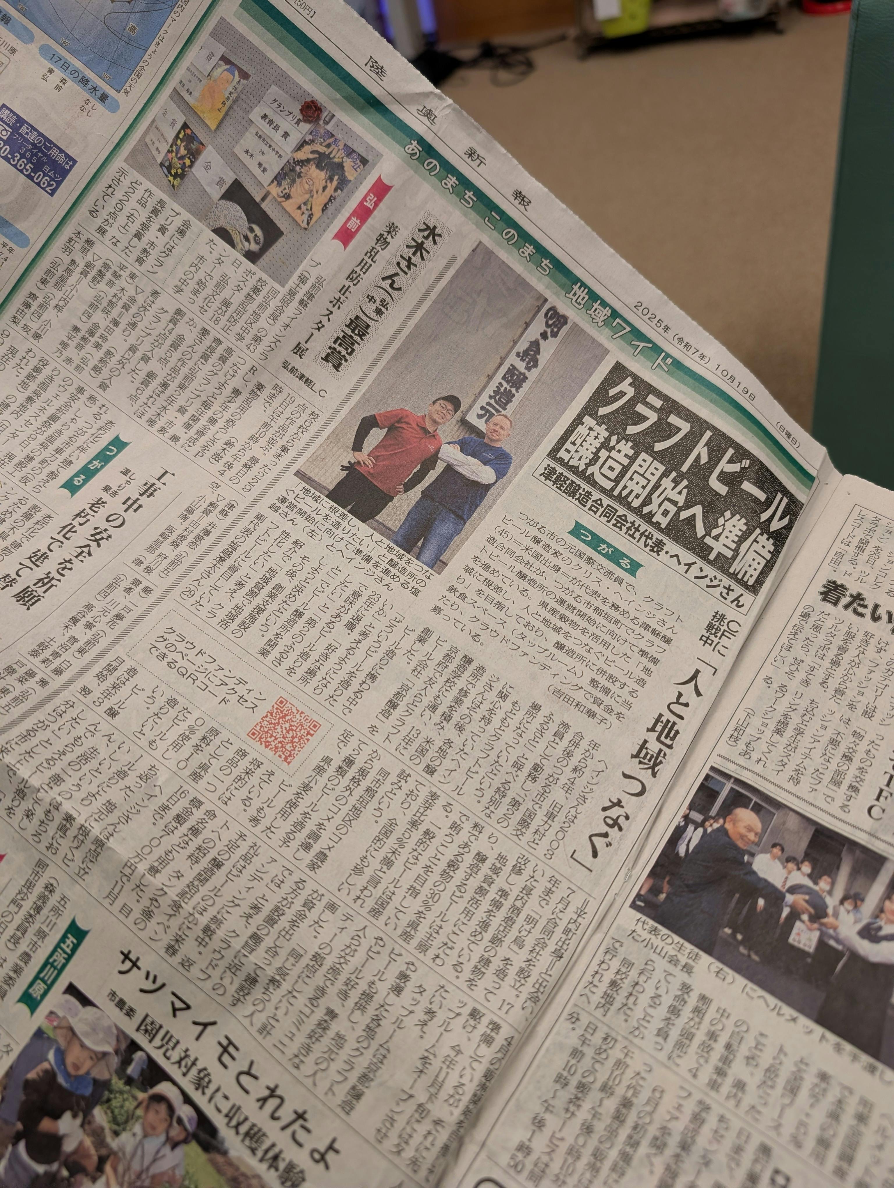 #津軽醸造 #クラフトビール #青森#陸奥新報 #地元新聞 #掲載ありがとうございます#ローカルファースト #地域づくり#つくり手つながる津軽 #クラファン挑戦中