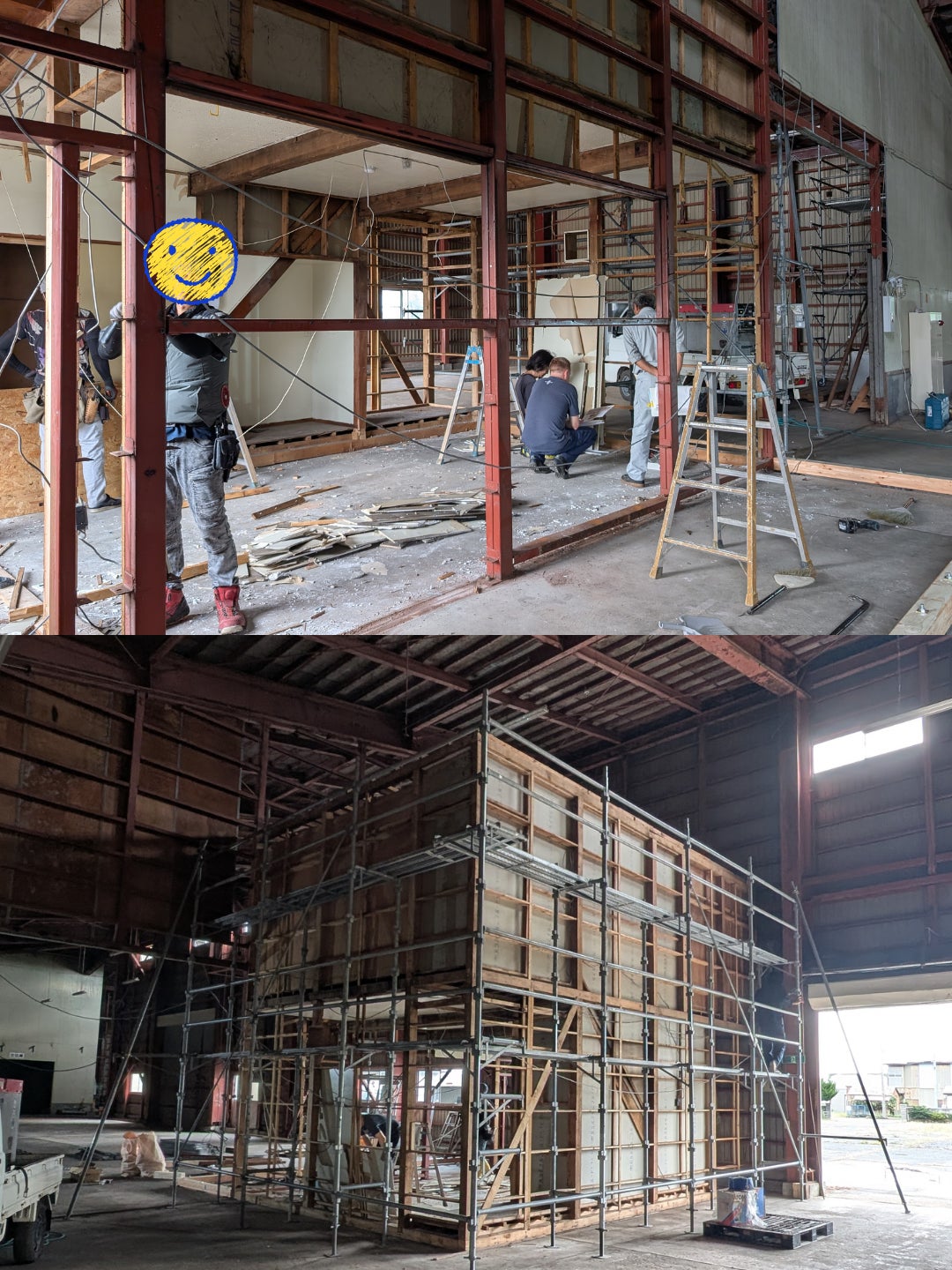 それにしても、職人さんたちの仕事が本当に早い!見るたびに新しい姿へと生まれ変わっていて、僕たち自身も驚きを隠せません(・o・)