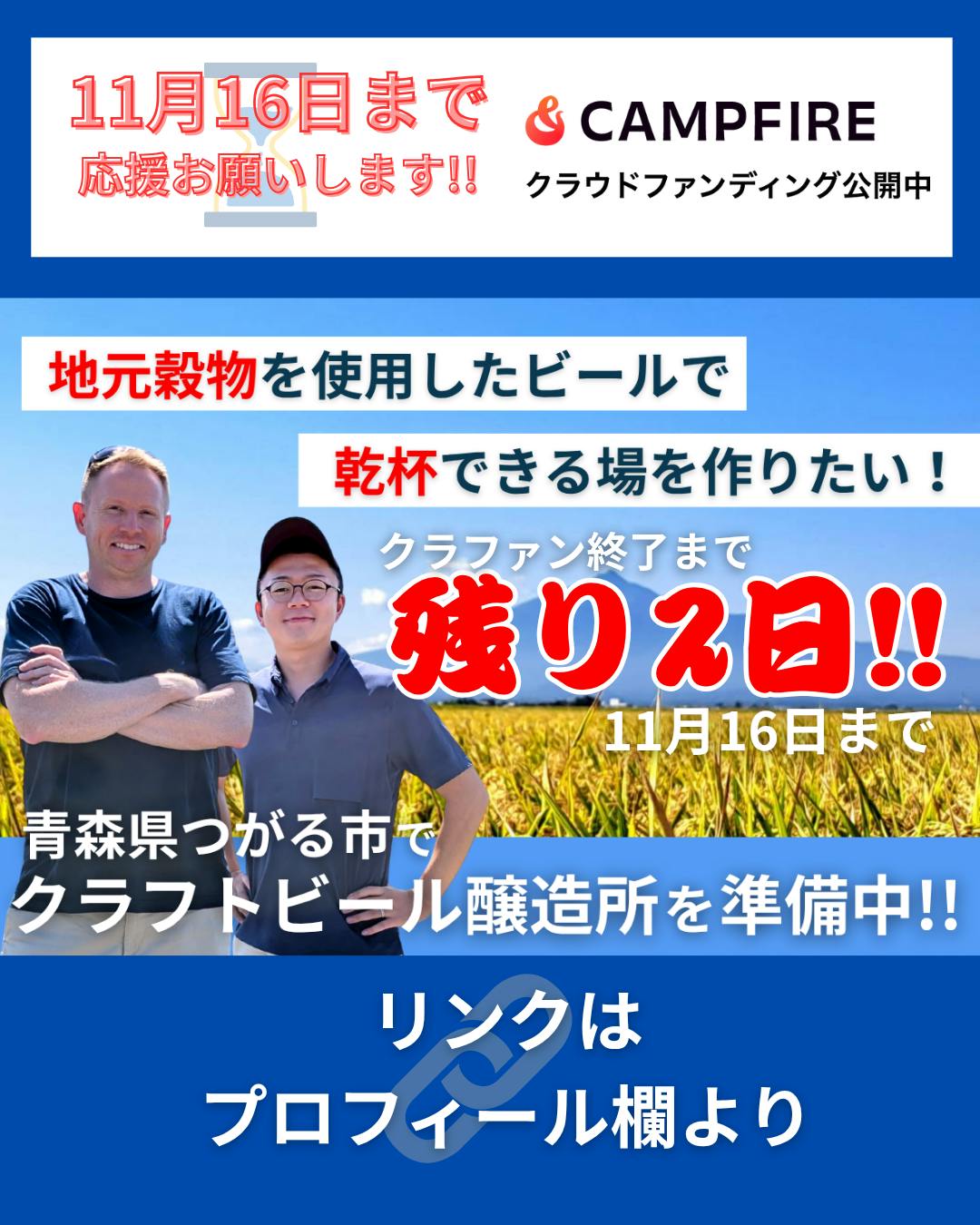#津軽醸造 #クラフトビール #青森 #つがる市 #クラファン挑戦中 #タップルーム #地域の力 #職人の技 #地元と共に #より良い明日を醸す