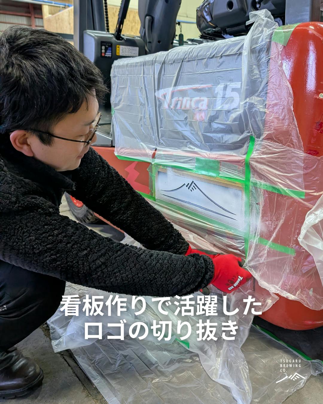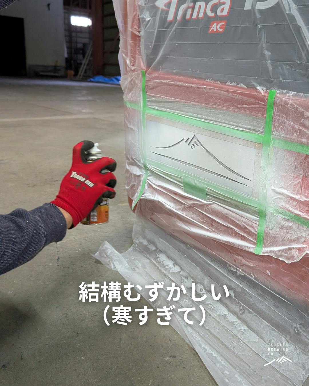 津軽醸造のロゴをスプレーで入れました。