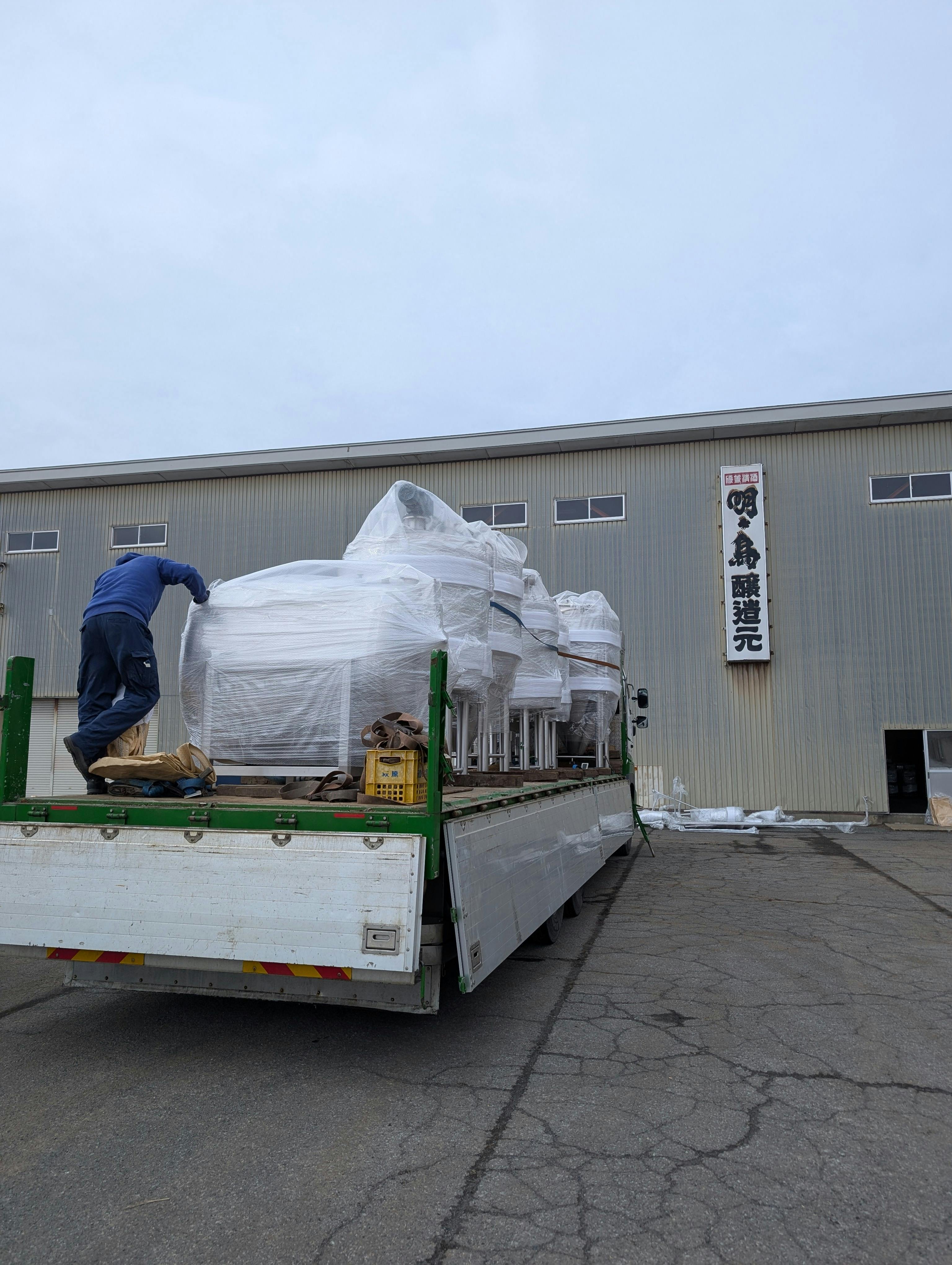 醸造設備の搬入がスタートしました。