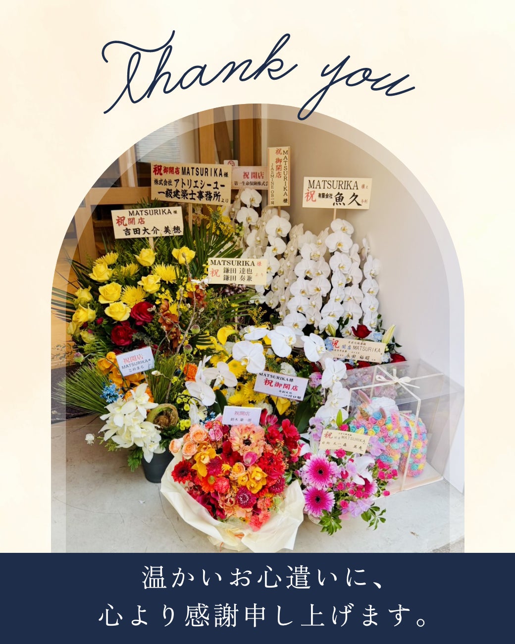 またお花やお祝いのお品物など頂戴し、誠にありがとうございました。