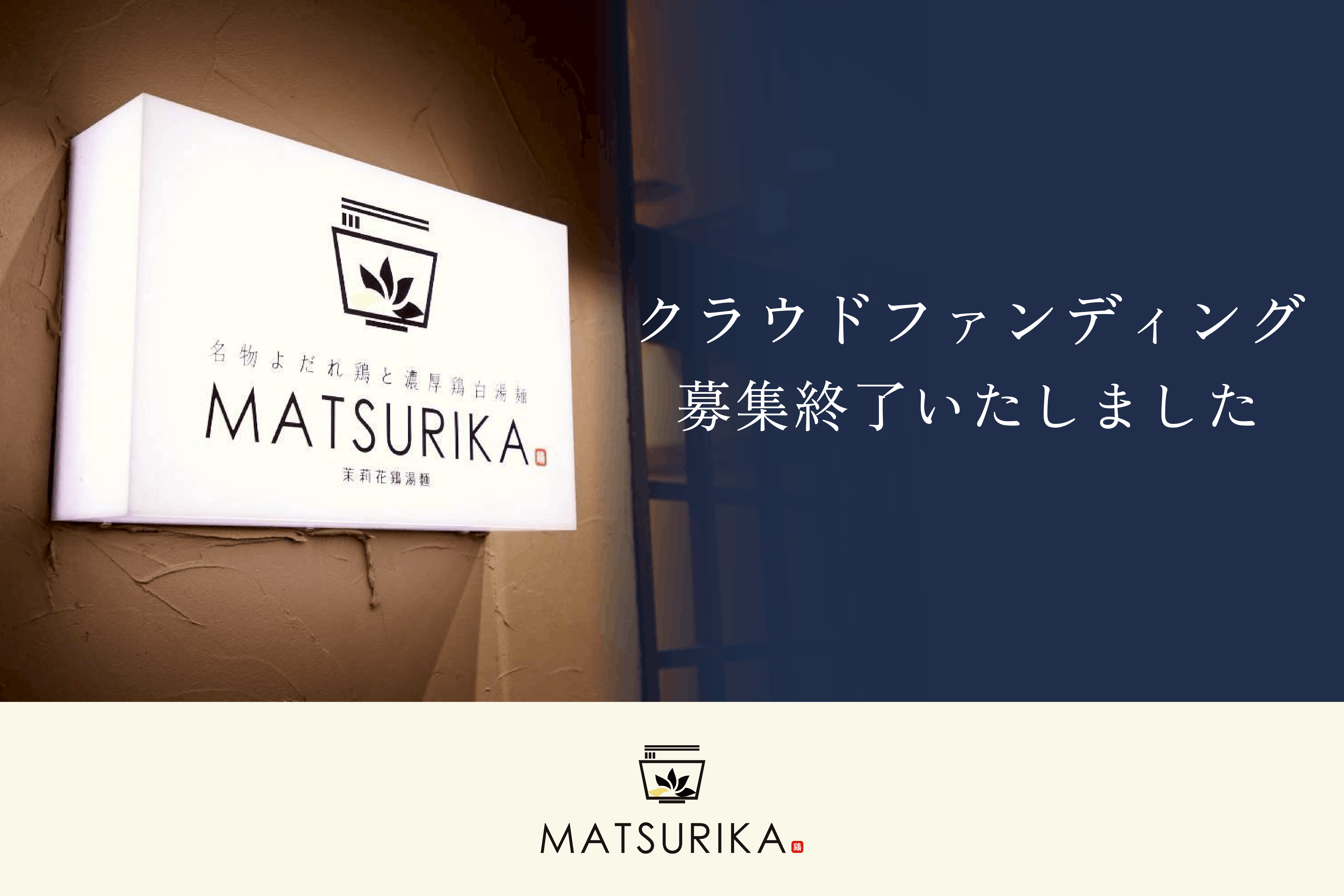 2025/12/16 20:00いつも温かく見守っていただきありがとうございます!MATSURIKAです。前回投稿したとおり、昨日を持ってクラウドファンディングの募集を終了いたしました。たくさんのご支援、そして温かい応援の言葉を本当にありがとうございました。正直なところ、挑戦を決めた当初は不安な気持ちもたくさんありました。それでも、皆様から寄せていただいたひとつひとつのご支援やメッセージに、何度も背中を押していただき、ここまで来ることができました。改めて、MATSURIKAというお店は本当に多くの方々に支えられているのだなと、感謝と嬉しさで胸がいっぱいです。皆様からお寄せいただいた想いとご期待を大切に受け止め、これからもその期待に応えられるよう、精一杯努めてまいります!今後の進捗状況やリターンの発送時期、営業再開日などの詳細につきましては、また後日こちらでご報告させていただきます!またお店で皆様にお会いできる日を、心から楽しみにしております!今後ともMATSURIKAをどうぞよろしくお願いいたします。 もっと見る