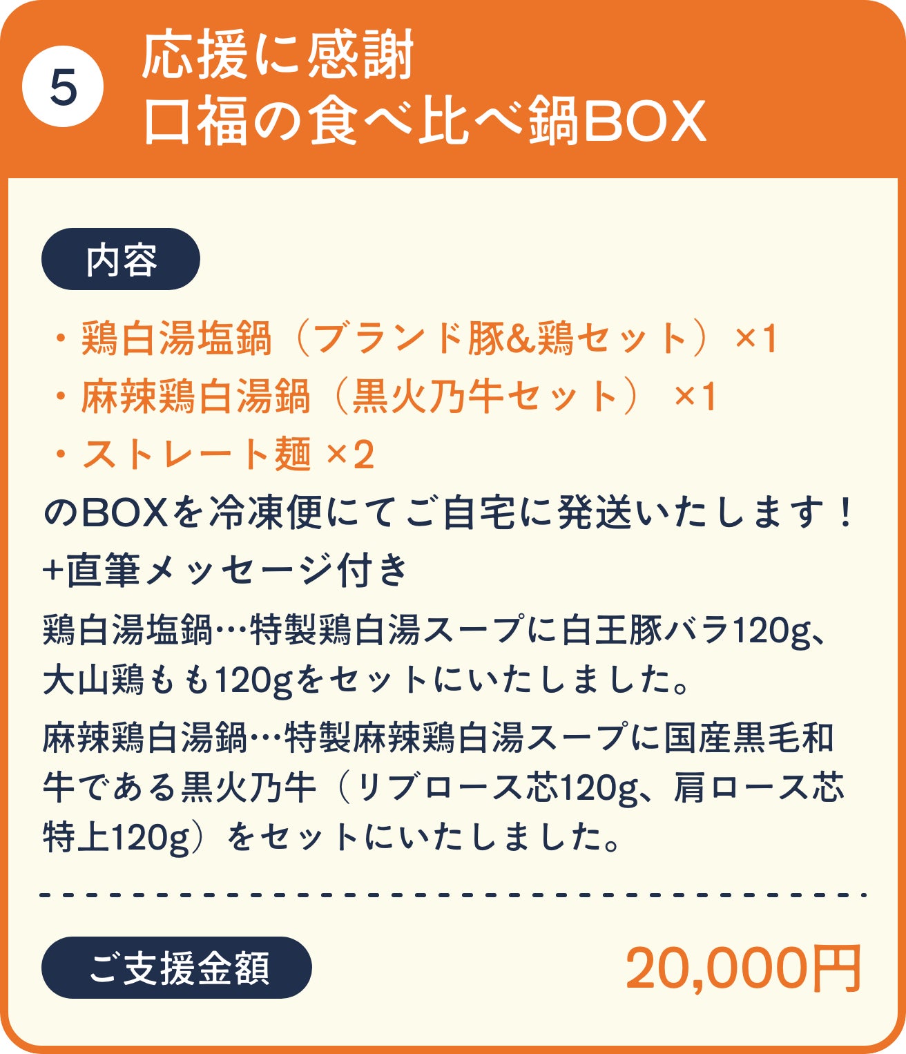 毎年、年末に福鍋として鍋を販売していましたが、今年は販売ができないためリターン商品として鍋をご用意いたしました。