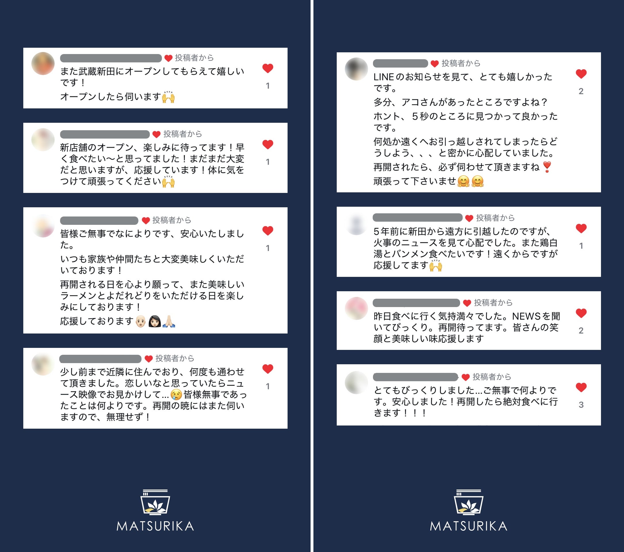 これまで支えてくださったお客様からSNSやメールを通して、または直接お声がけいただき、ご心配や応援のお言葉をいただきました。本当にありがとうございます。