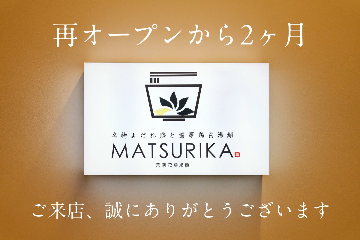 東京都大田区の武蔵新田駅近くで濃厚鶏白湯麺専門店『MATSURIKA』を運営しています。