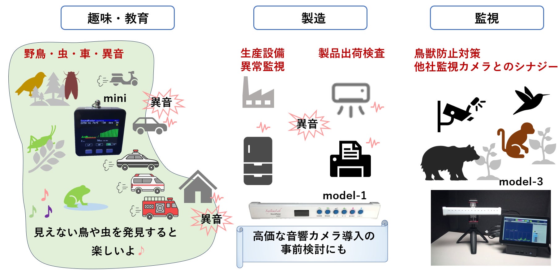 Sシステムラボは、個人の趣味、製造ラインでの音検査、監視など、さまざまシチュエーションでサウンドレーダーを活用していただきたいと考えています。「まだ見たことのない音の世界」を一緒に開いてみましょう。その先には、この基盤技術を応用したさらなる新展開も待っています。