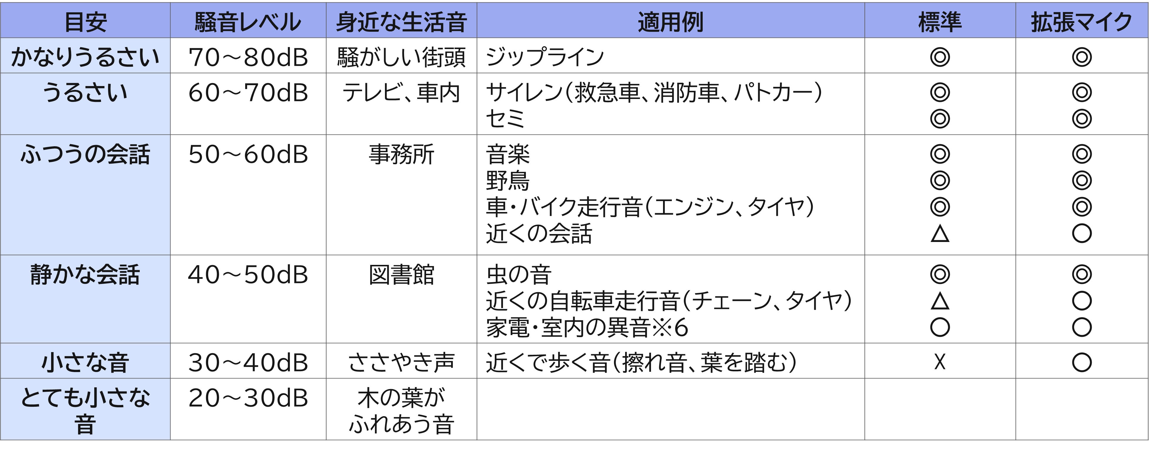 ※5 標準では2250~8000Hz、拡張マイクでは1125~8000Hzの音が対象です