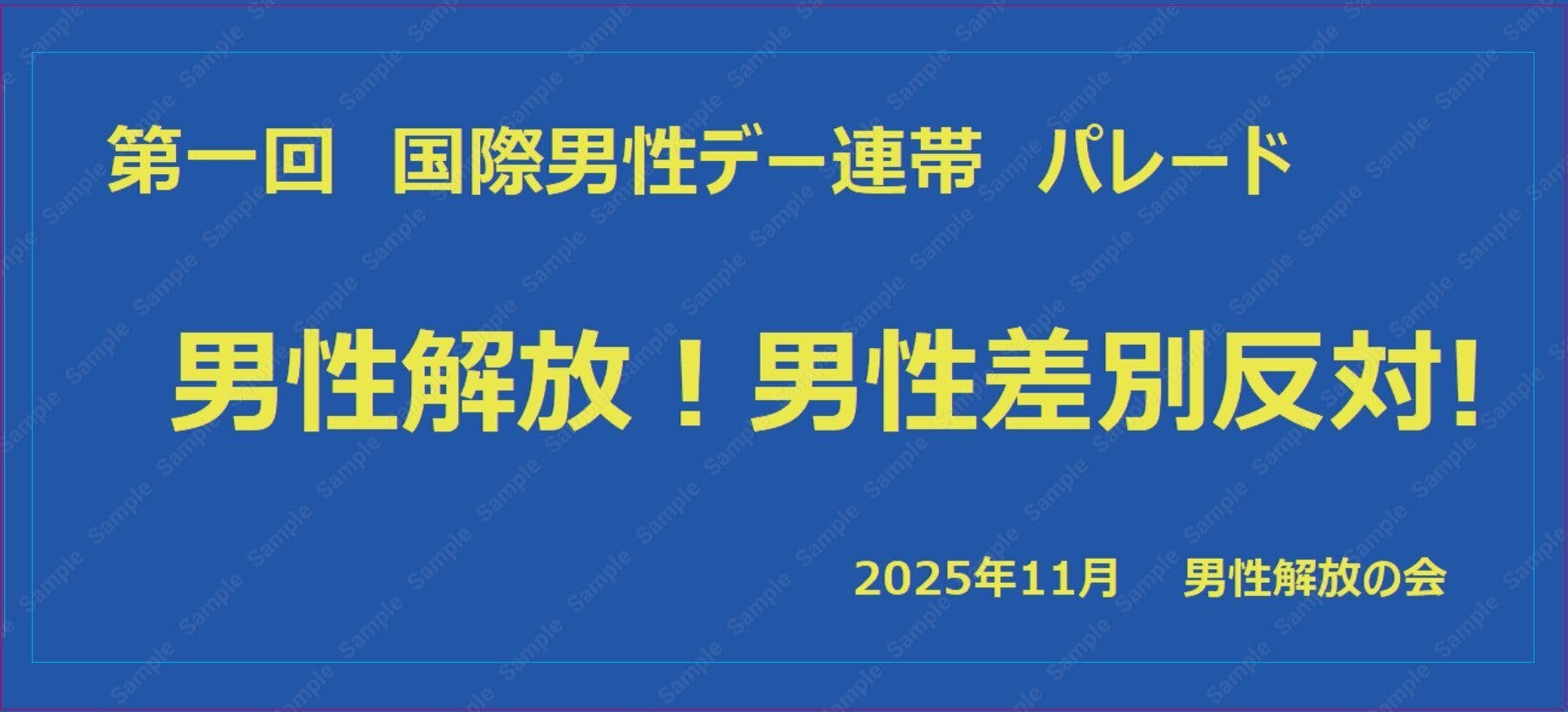 パレード参加メンバーに書きたいことを書いてもらって社会に訴えています。高市早苗議員が首相になりましたので憲法9条が危ない。憲法9条は日本人男性の生命を守ってきたと思います。男性解放の会は憲法9条を日本近辺のアメリカ、ロシア、中華人民共和国、朝鮮民主主義人民共和国に「おしつけ」たらどうか?と主張したいです。憲法9条とマスキュリズム(男性主義)の平和主義