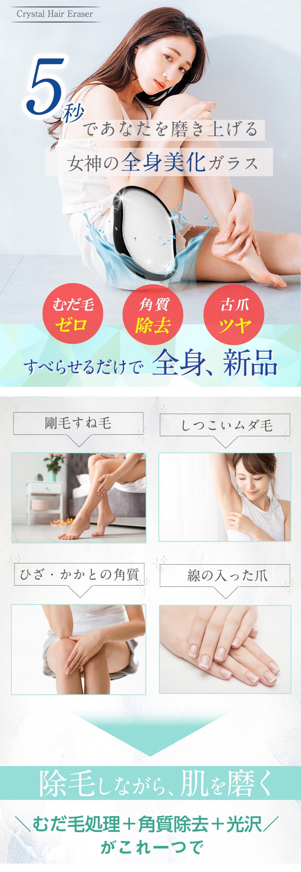・お子様の手の届かない場所に保管してください。・肌に異常がある時は使用をお控えください。・強くこすりすぎないでください。赤くなったり痛みが出る場合があります。・水場でご使用後は水気を拭き取ってください。・体質や体毛の濃さにより効果には個人差があります。・ほとんどの体の部分にお使い頂けますが、顔やデリケートゾーンなど皮膚の薄い部分への使用はお控えください。