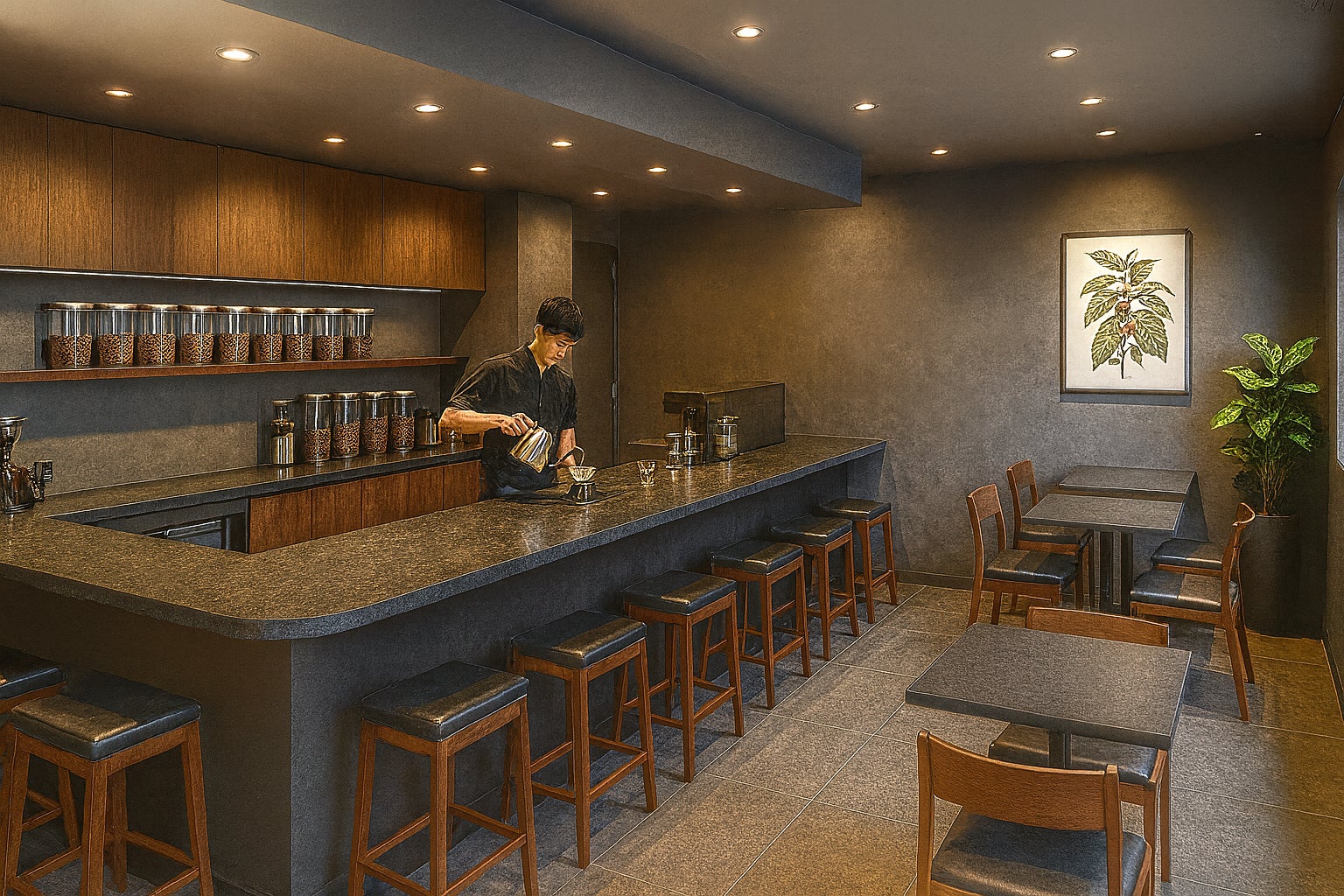 - 内装工事費:約500万円(デザイン重視の施工)- エスプレッソマシン:約200万円- サイフォン器具・ハンドドリップ器具:約50万円- 小型焙煎機:約100万円- キッチン設備:約50万円- 家賃保証金・契約費用:約300万円合計:約1,200万円〜1,300万円を想定。
