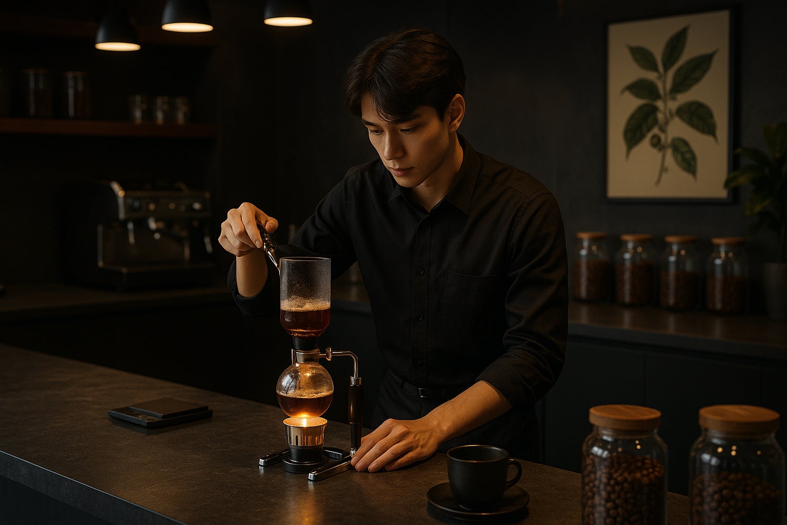 サイフォン:香りと視覚効果に優れ、特別感を演出できる抽出
